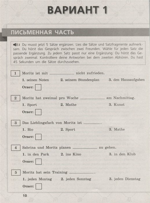 Учебное пособие предназначено для подготовки школьников к участию в ВПР по немецкому языку и может быть использовано на уроках, во внеурочной деятельности, для самостоятельной работы дома в качестве дополнительного материала для закрепления и обобщающего повторения. Пособие обеспечит потребителя готовым комплектом вариантов в формате ВПР, что позволит подготовить учащихся к пониманию и выполнению заданий ВПР по немецкому языку.