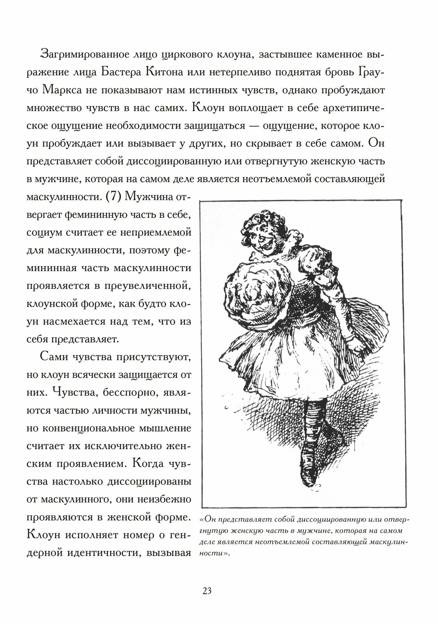 .Ведьма дает нам образ силы в женском, женского ума и духа, изначального в своей мощи, подлинного в своей мудрости. Клоун создает образ мягкого чувства, скрытого внутри мужского, к которому мужчины должны обратиться, понять и принять.