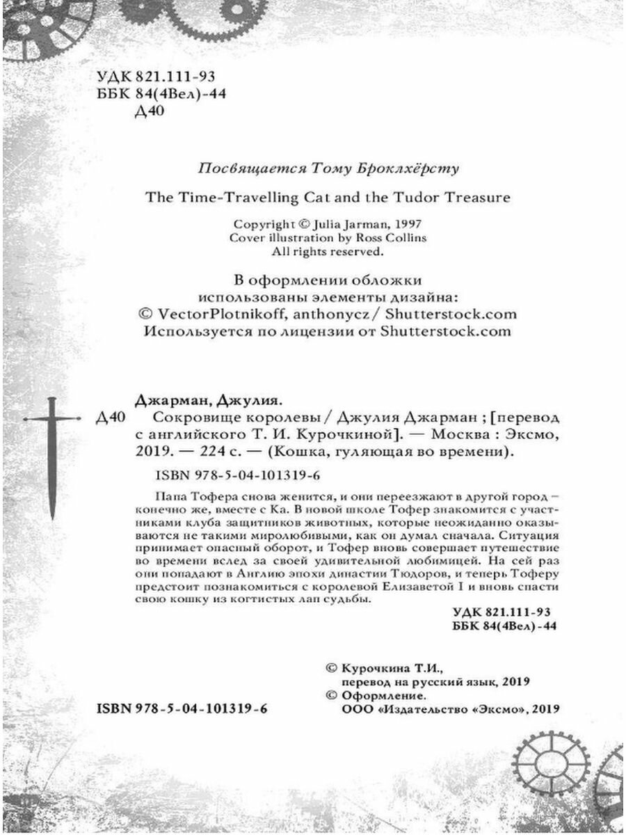 Отличная книга! Очень здорово передана атмосфера эпохи королевы Бесс. Я не так давно прочитала графический роман 1602, в нём о той же эпохе, только про супергероев, так вот очень напомнило. Хотя про кошку оказалось даже интереснее. Что очень хорошо в этой книге - она детская, но не примитивная, точно понравится любознательному ребёнку лет 10-12-14, но и взрослому читать очень интересно. Некоторые моменты так и вообще будут понятны только взрослому, но и ребёнок ничего важного не упустит. Рекомендую.