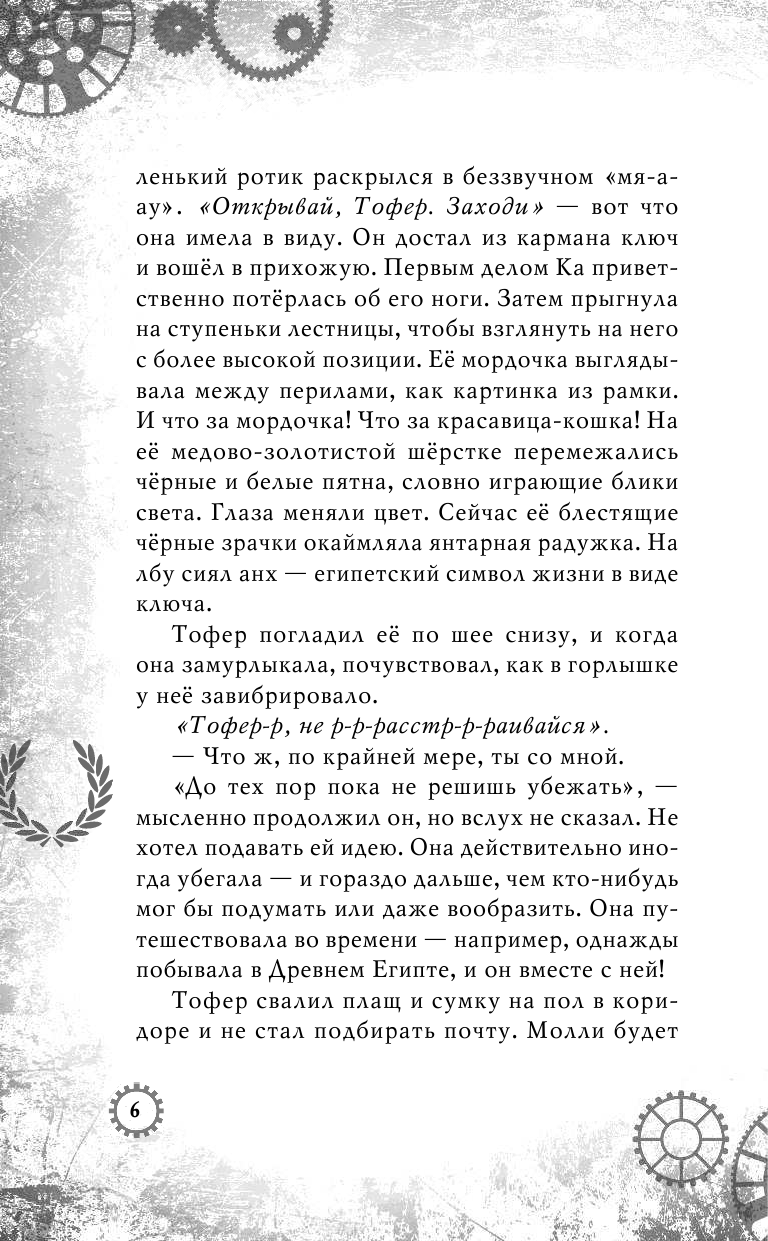 Повествование о приключениях, дружбе и взаимопонимании. Что ещё примечательно, действия частей книг разворачиваются в разные эпохи, потому что у кошки есть необычная способность передвигаться во времени.