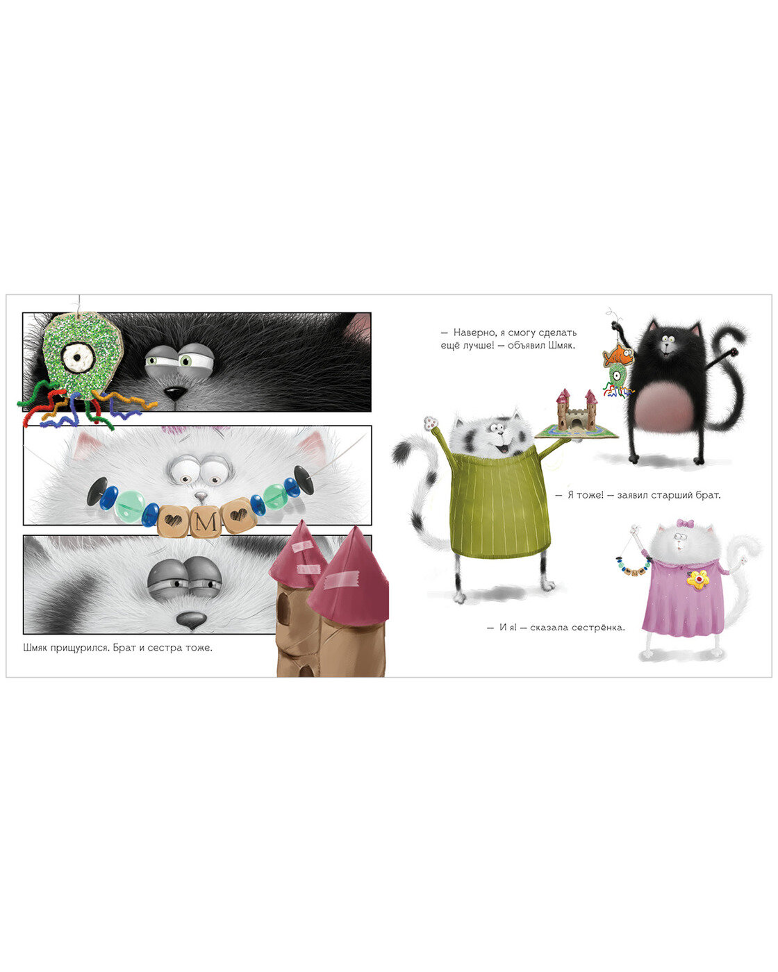 Безумно красивая детская книга, очень понравилась. До этого всегда брали книги маленького формата, а тут на глаза попалась книга большого размера, решили попробовать. Как всегда нас ожидает веселая история о котенке Шмяке и его семье, которые всегда попадают в нелепые ситуации. Книжка забавная и смешная, иллюстрации очень красивые, текста немного. Не пожалела, что купила обязательно будем покупать еще:)