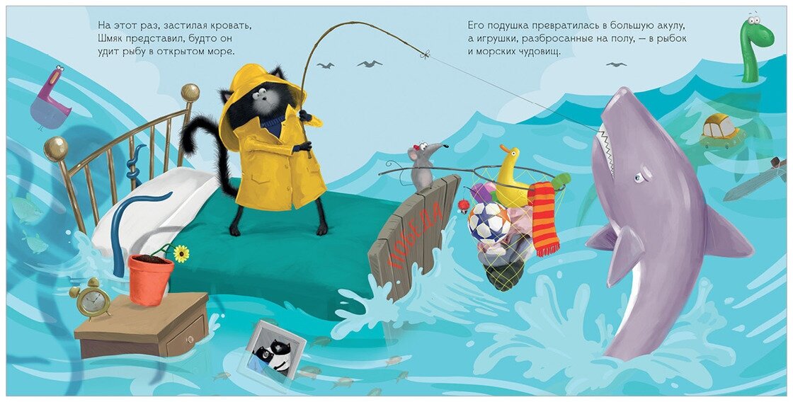 У котенка Шмяка сегодня много домашних хлопот - убрать игрушки, застелить постель, полить цветы... Это так скучно! Что же делать? А что, если цветы - это дикие джунгли и надо спасти остров от засухи? А что если игрушки - это сокровища пиратов, которые нужно спрятать в сундук? Так выполнять домашние порчения гораздо веселее! Но справится ли Шмяк?