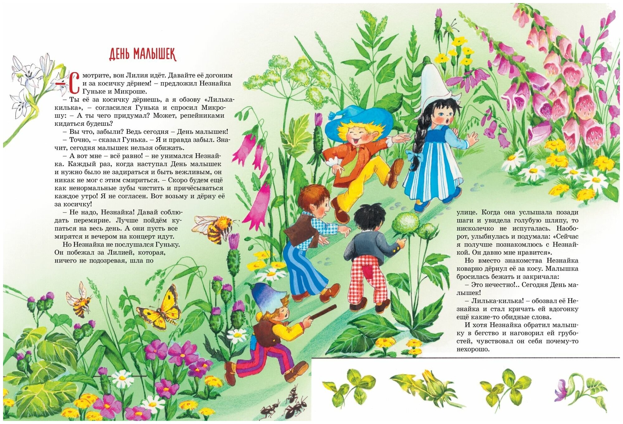 В книгу вошли "Приключения Незнайки и его друзей" - любимая многими поколениями история о малышах из Цветочного города, которые сооружают воздушный шар и попадают в Зелёный город, а также весёлые рассказы о Незнайке, его друге Гуньке, учёном Знайке, художнике Тюбике, докторе Пилюлькине и других обитателях Страны коротышек.