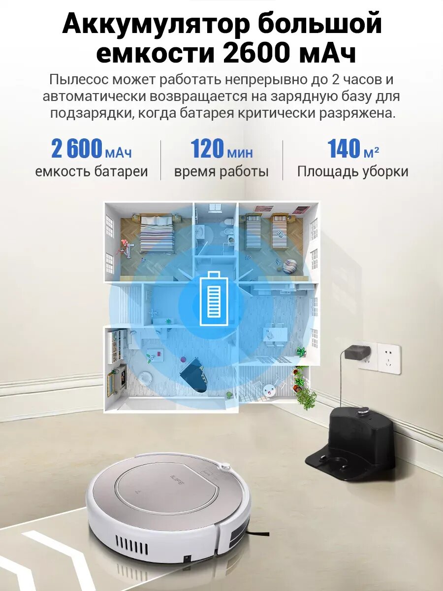 | Особенности | Автоматическое возвращение на зарядную станцию. |