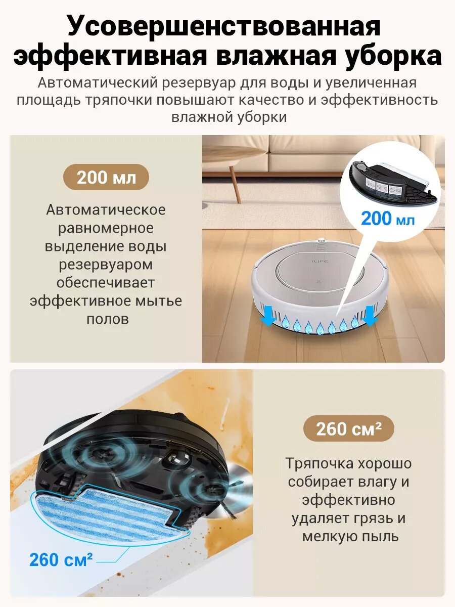 Робот-пылесос ILife – пока он работает, вы отдыхаете! Встроенная аккумуляторная батарея позволит непрерывно работать 110 минут. В процессе перемещения по комнатам робот использует сенсоры определения препятствий, чтобы исключить соударения с мебелью и предметами интерьера. Благодаря небольшой толщине корпуса робот легко проходит под шкафом, креслом или диваном, выполняя уборку в труднодоступных местах.