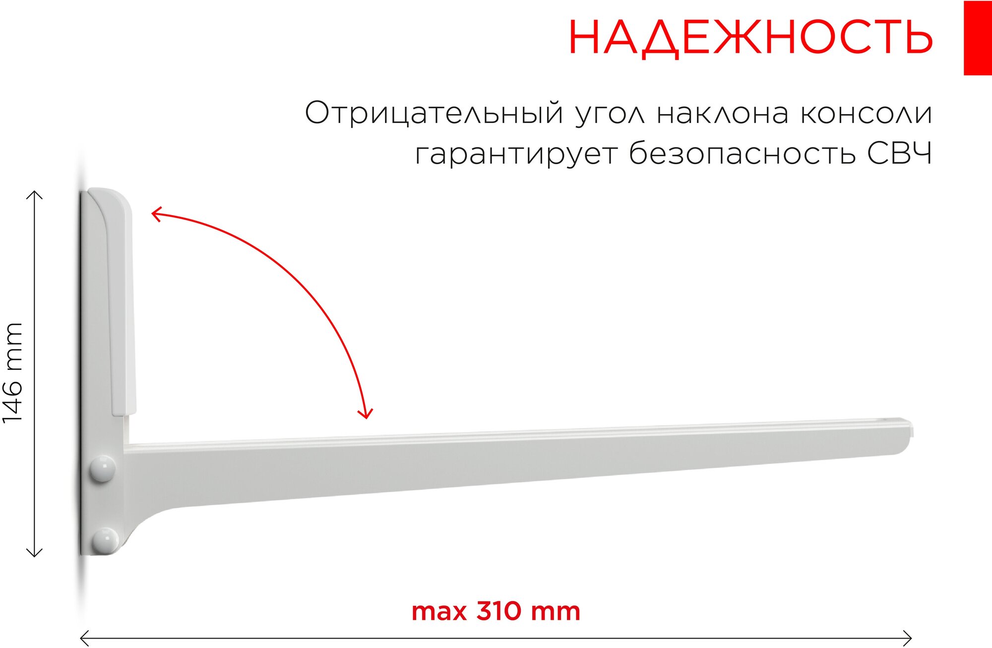 - Кронштейн не пригоден для крепления микроволновки, вообще непонятно для чего он может быть пригоден. Конструкция опасная!СВЧ просто соскальзывает при открывании дверцы!!