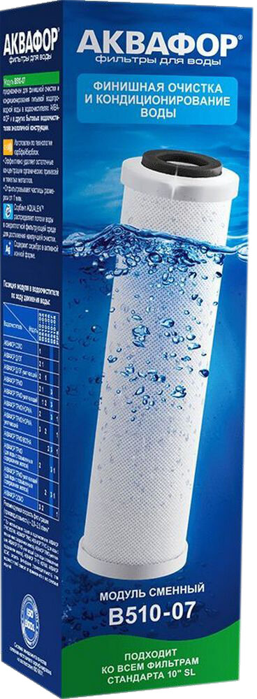 Сменный очищающий модуль Аквафор B510-07 предназначен для финишной глубокой сорбционной очистки питьевой воды. Данный аксессуар удаляет практически все загрязнения и болезнетворные микроорганизмы. Предназначен для комплектации с водоочистителями Аквафор под мойку , однако подойдет к фильтрующим системам типоразмера SL10 от других брендов.