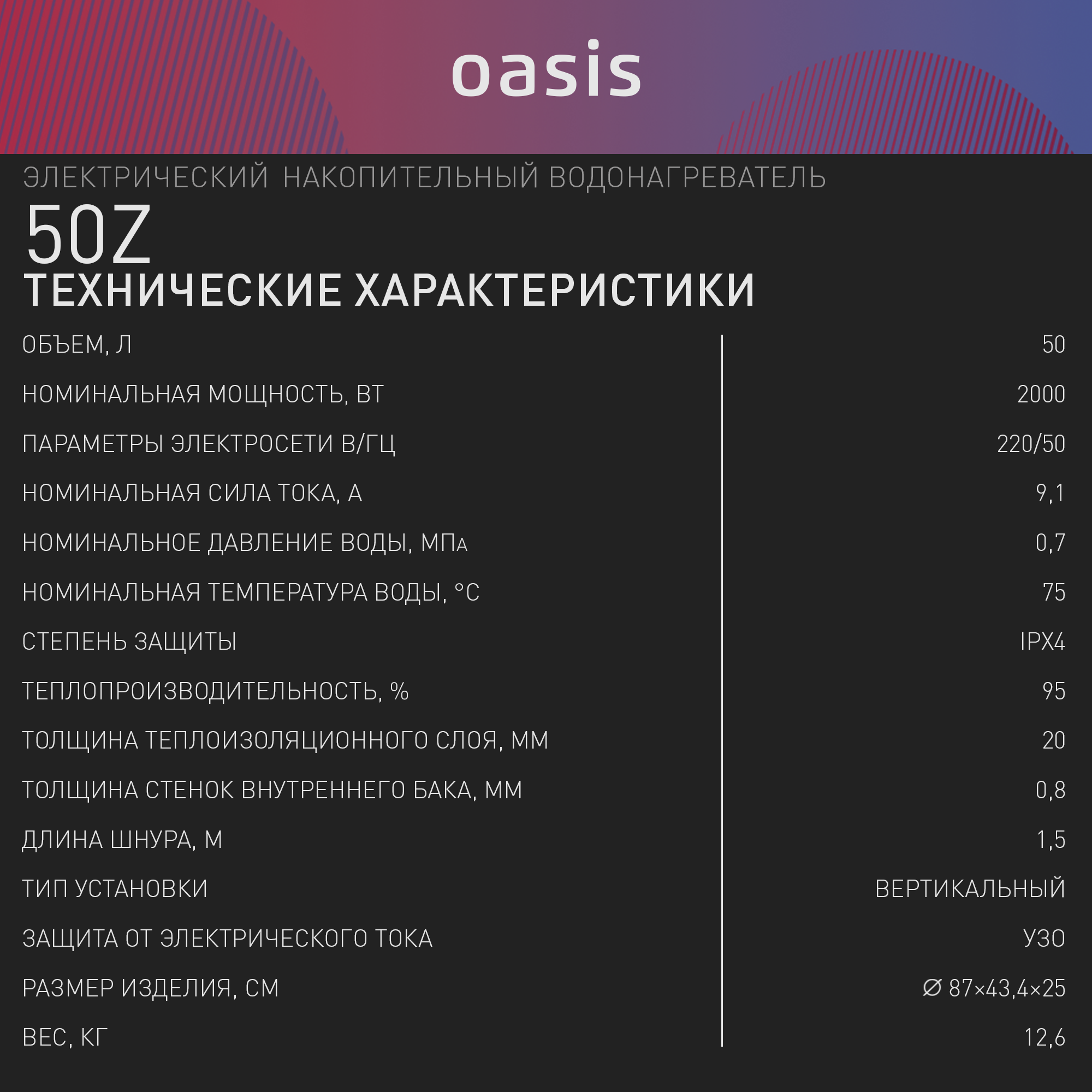 Электрический водонагреватель Oasis »