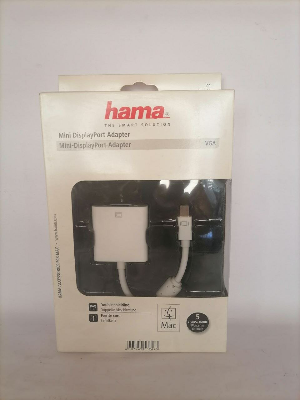 Адаптер Hama Display Port / VGA HD15 (00053247) подходит для подключения разъема mini Display Port от MacBook Air, MacBook Pro, iMac, Mac Pro и Mac mini к монитору / телевизору или проектору с разъемом VGA. Совместимость с технологией Thunderbolt.