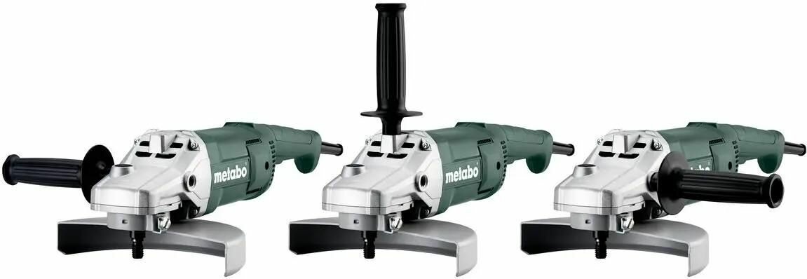 Угловая шлифовальная машина Metabo WE 2200-230 - Надежный мотор. Плавный пуск благодаря ограничению пускового тока предотвращает рывок инструмента при запуске. Дополнительная рукоятка может быть установлена в трех положениях: слева, справа или сверху. Мера выключателя: блокировка против случайного включения.
