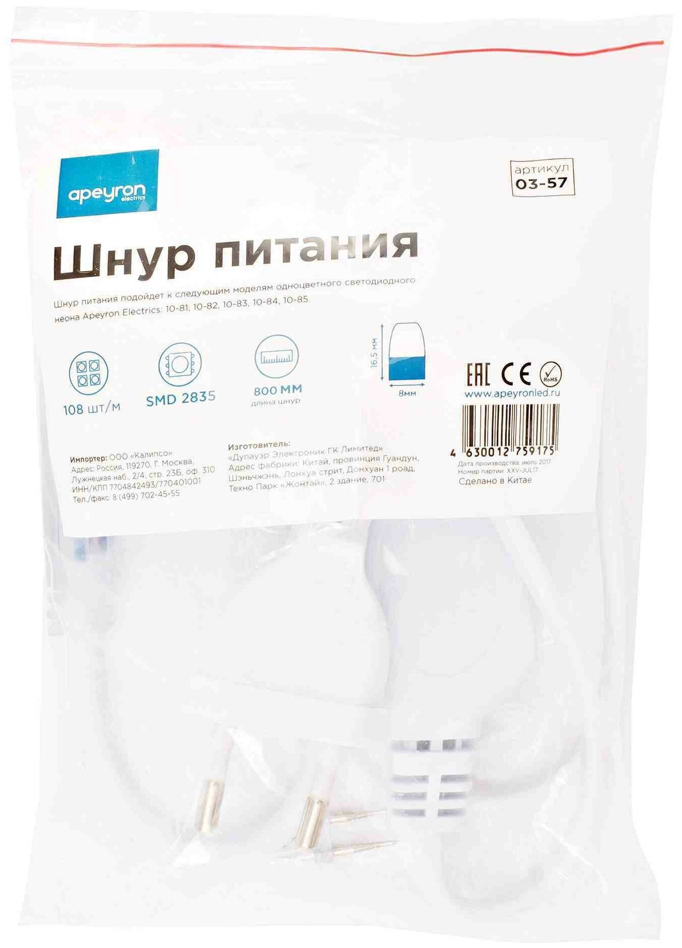 Шнур питания для одноцветного светодиодного неона Apeyron »