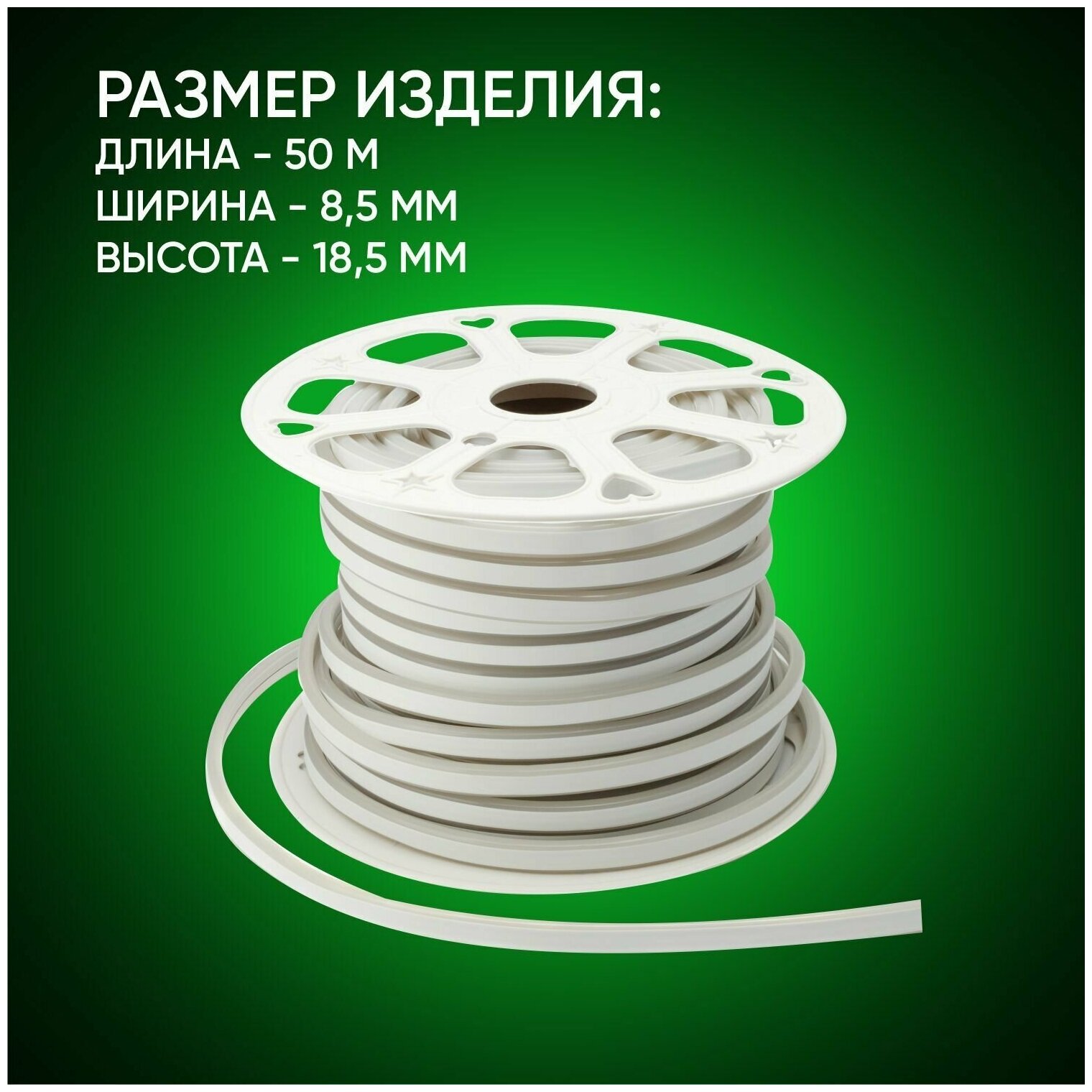 Герметичная резиновая трубка обеспечивает неону надежную защиту от перепадов температур, неблагоприятных погодных условий и разного рода механических повреждений. В катушке 50 метров.