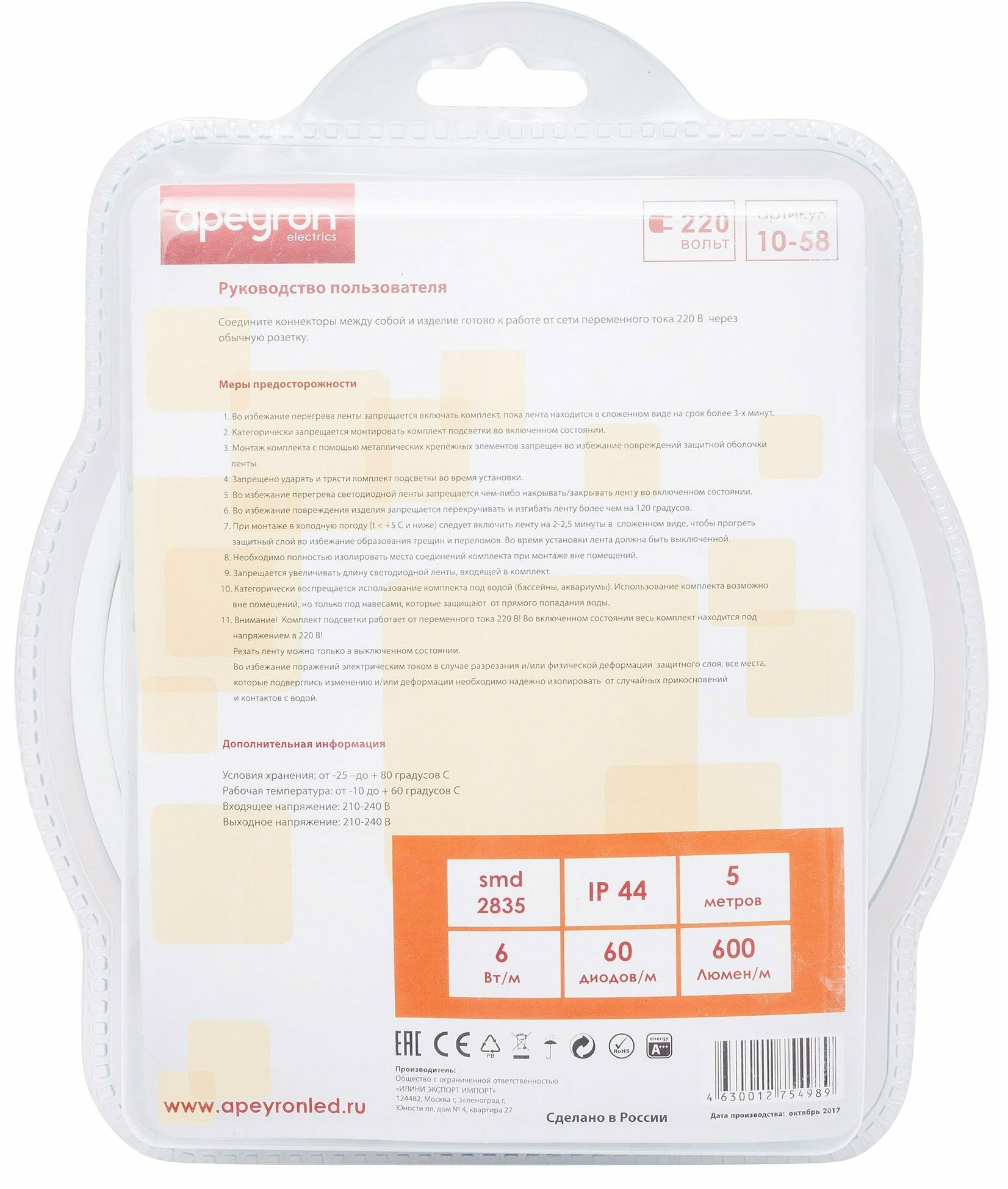 Коннектор для светодиодной ленты SMD2835 60д/м IP44 5 м Apeyron Electrics