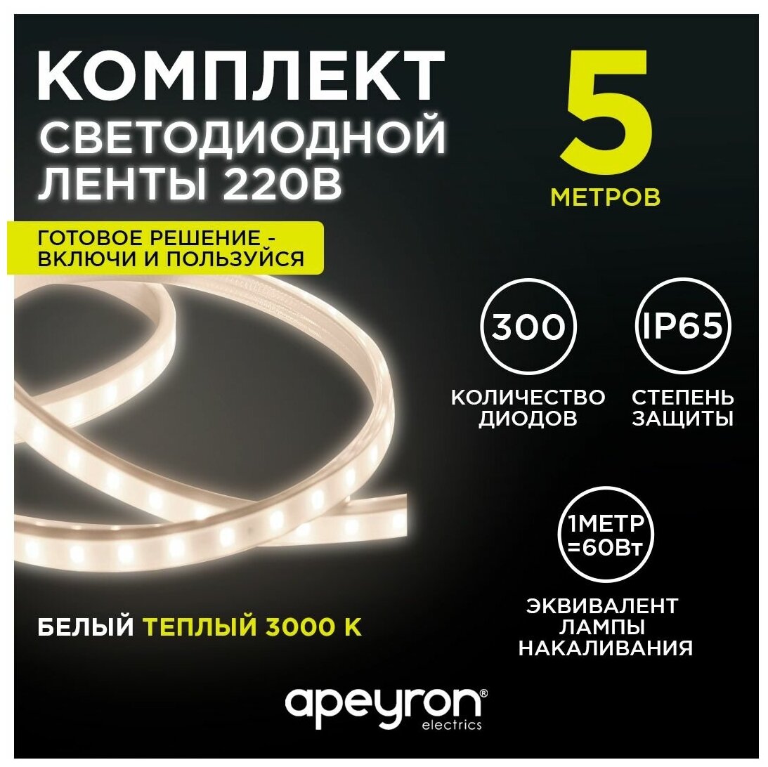 Сервис сравнения цен СкидкаГИД предлагает сравнить цены на товар «Коннектор для светодиодной ленты SMD2835 60д/м IP44 5 м Apeyron Electrics»
