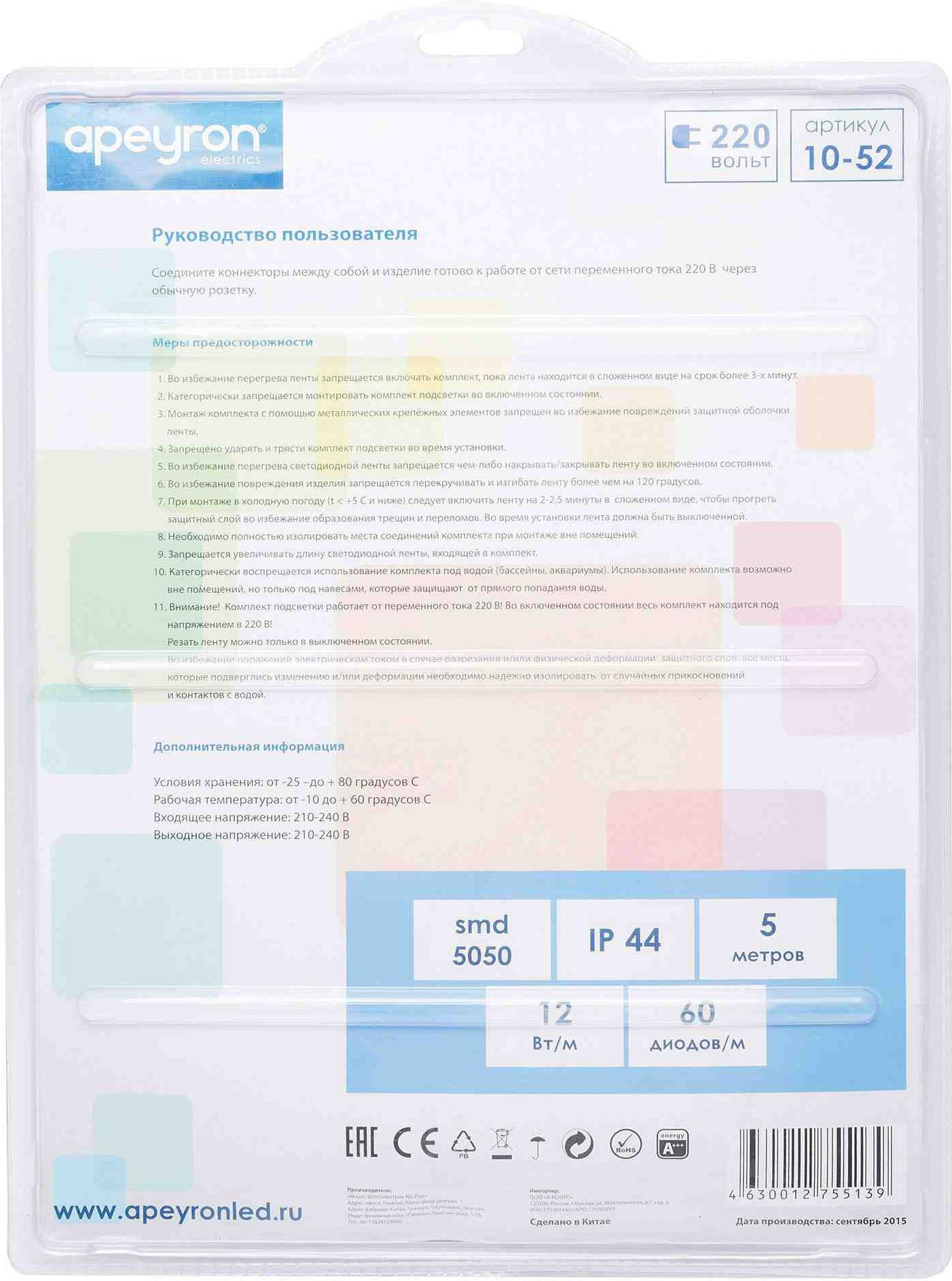 Коннектор для светодиодной ленты SMD5050 60д/м IP44 5 м Apeyron 10-52