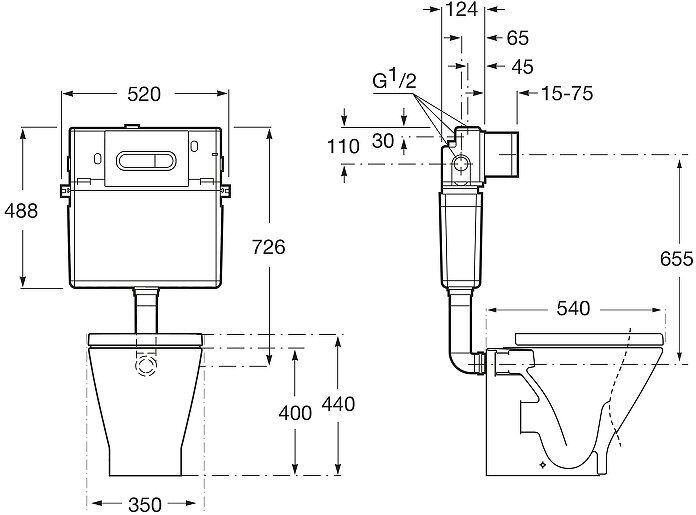 - Арматура с двумя режимами обеспечивает эффективный смыв и способствует экономии воды.