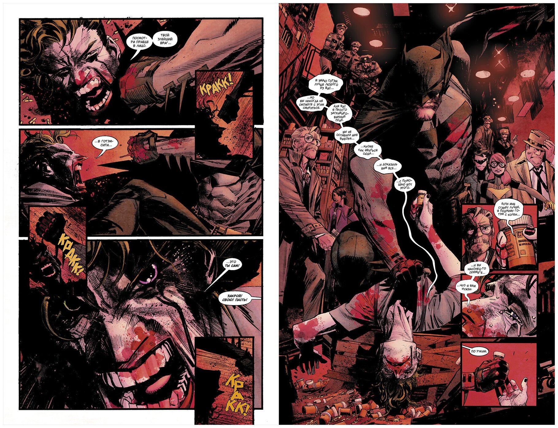 Если руки сейчас и доходят до супергероики, то только до избранных мини-серий, желательно не требующих копаний в бесконечных сеттингах и досье на действующих лиц. А если уж речь о мастодонтах с 80-летней историей, за которую их «прописали» и в хвост и в гриву, тут еще хочется и хоть какой-нибудь оригинальности увидеть. Потому что читать про одну и ту же драматургию в отношениях главных персонажей (даже с одинаковыми фразами в бабблах) в огромном количестве историй, ну такое… Что нам предлагает мини-серия «Белый рыцарь»? Это новый взгляд на главного антагониста, неоднозначного Джокера. Сюжет в стиле «Что если?». Автор бросает вызов традиционным образам, передав безумие (если хотите, отсутствие самоконтроля) от одного соперника другому. Получился ли переворот с ног на голову ролей двух главных противников? Автору, на мой взгляд, не удается выжать весь потенциал этого амбициозного эксперимента, и история заканчивается довольно канонично. Что не умаляет попытки выйти за рамки устоявшихся амплуа. Вскользь упомяну недоработки в объяснении легкого освобождения и последующего возвышения Джокера (Напьера), и откровенные ляпы, по типу боевого костюма под халатиком на голое тело. Помимо сюжета, автор отвечает и за рисунок. И тут он действительно на высоте!