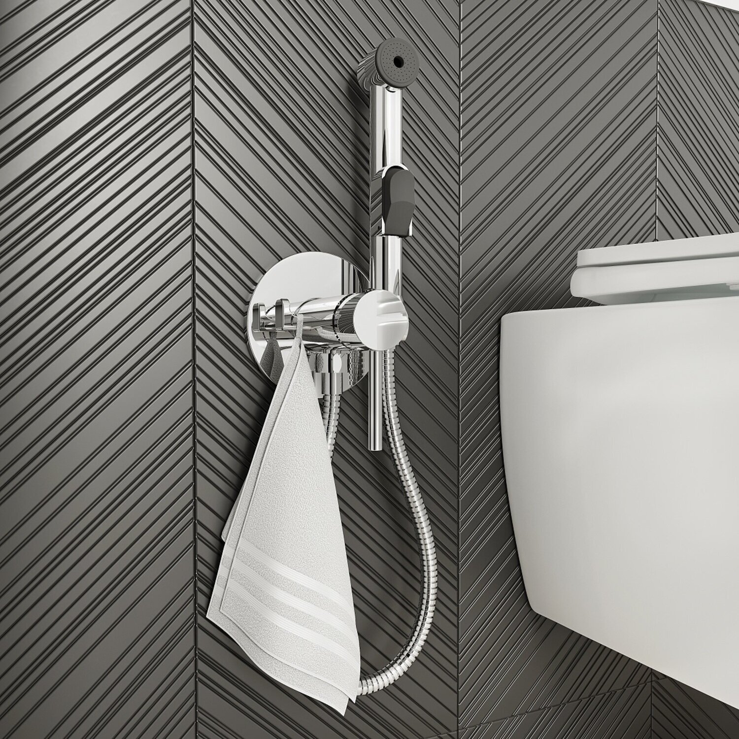 Встраиваемый смеситель с гигиеническим душем. Картридж Softap. Особая плавность и надежность хода ручки смесителя — для точной регулировки температуры и напора воды. Гигиеническая лейка и душевой шланг 1,2м в комплекте. Эстетика и удобство использования. Встраиваемые смесители позволяют создать строгую геометрию в интерьере, экономят пространство и упрощают уборку — благодаря скрытому монтажу и отсутствию больших выступающих элементов конструкции. Монтаж в стену глубиной от 40 до 60 мм. Подключение с помощью любых труб. Диаметр входных отверстий 1/2 дюйма. Крючок для полотенца и держатель для лейки при необходимости можно менять местами!