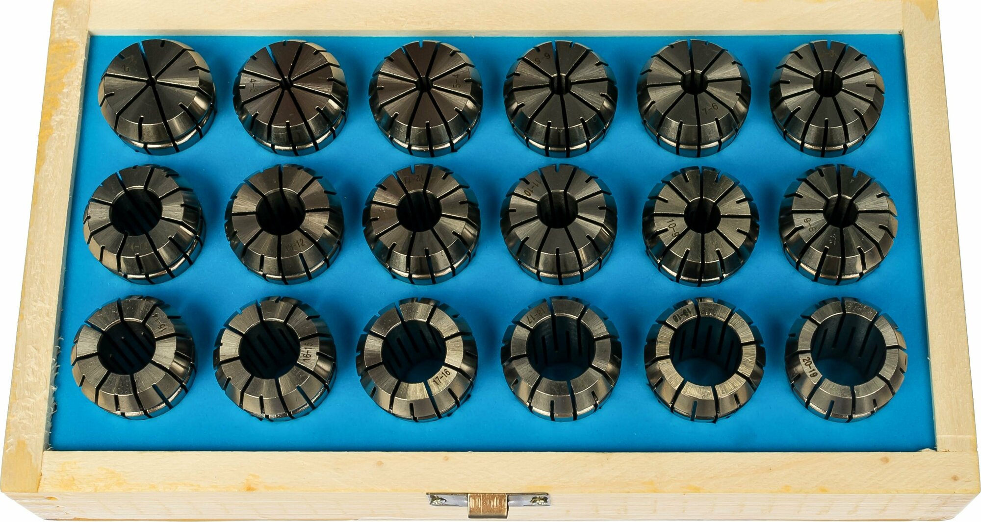 Набор цанг ER32 GRIFF применяется для зажима металлорежущего инструмента. Сами цанги закрепляются в специальных цанговых патронах. В комплекте 18 цанг размером от 3 до 20 мм. Изготовлены в соответствии с DIN6499.