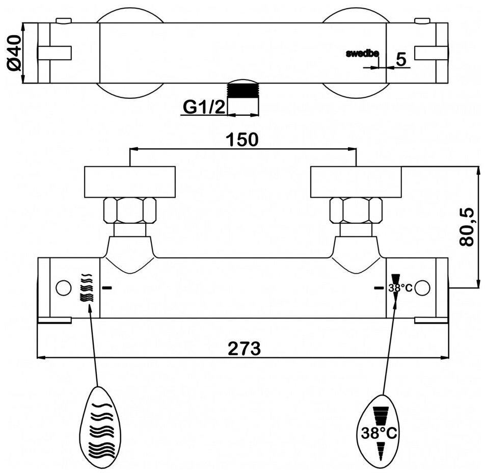 В комплекте поставки: термостатический смеситель, эксцентрики и декоративные накладки, набор креплений, инструкция.