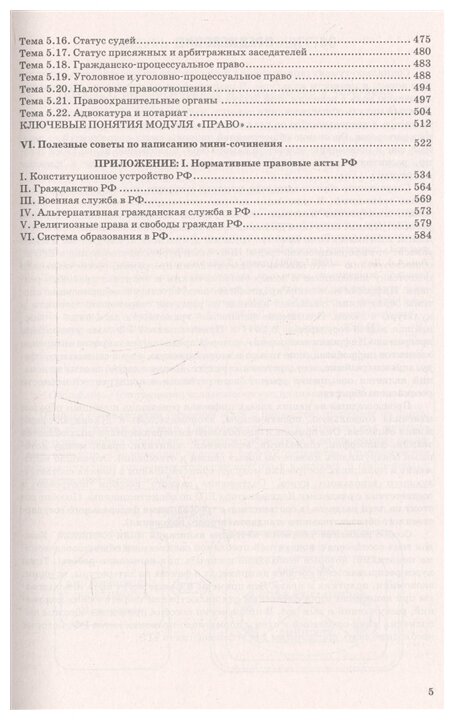 Содержание пособия охватывает все разделы курса и темы Кодификатора ЕГЭ. Оно включает схемы и таблицы, облегчающие восприятие и запоминание учебного материала, ключевые понятия курса, а также практические рекомендации по написанию мини-сочинения: по каждой теме даны факты и примеры для иллюстрации положений, рассуждений и выводов сочинения. В приложении в простой и наглядной форме изложено содержание нормативно-правовых актов РФ, знание которых необходимо для выполнения всех заданий ЕГЭ.