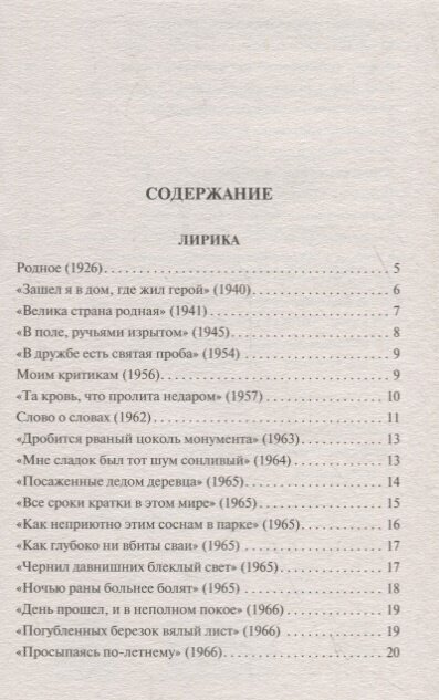 В сборник также вошли стихотворения разных лет - преимущественно поздняя лирика Твардовского, его осмысление жизни и творческого пути.