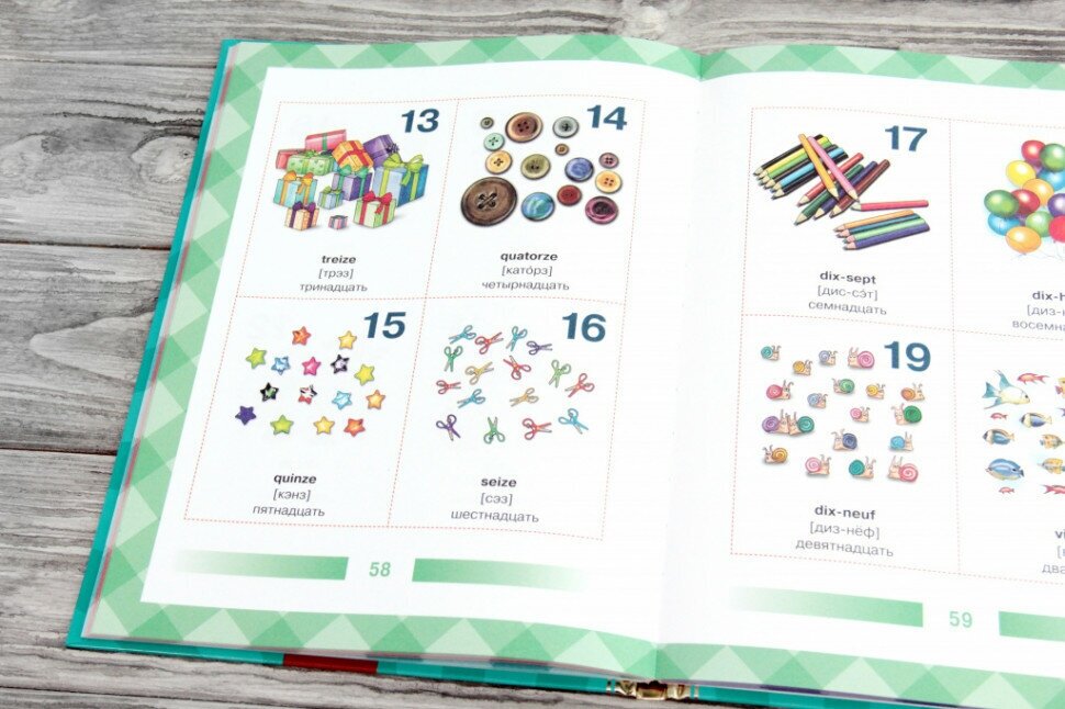 Интересное издание и красочный словарь. Будет интересен детям и школьникам начинающим изучать французский язык. Понравилось то, что картинки и иллюстрации подписаны, с переводом и транскрипцией на русском языке. Большой выбор и разнообразие тем. Рекомендую использовать для изучения французского языка.