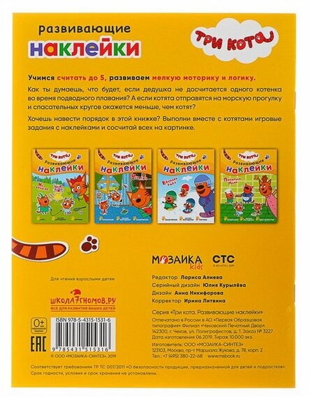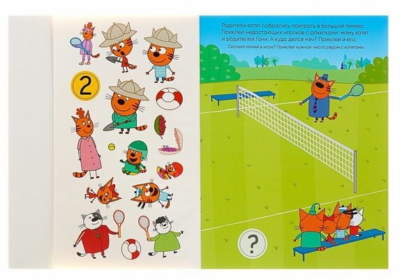 Миу-миу-миу! А ваш ребенок любит мультсериал «Три кота»? Тогда ему обязательно понравится эта красочная книжка с многоразовыми наклейками.
