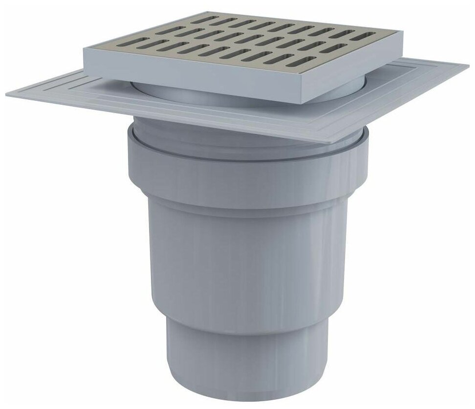 Сливной трап 150 150/110, подводка прямая, решетка нержавеющая сталь, воротник 2-х уровневая изоляция, гидрозатвор мокрый. Объемный сливной трап. Решетка из нержавеющей стали 145x145x5 мм. Регулируемая по высоте горловина 3757 мм. Воротник с 2-х уровневой изоляцией для армирования стяжки под плиткой. Прямое подключение к канализационному стоку 110 мм. Мокрый гидрозатвор надежно защищает от проникновения запаха из канализации. Материал: полипропилен, устойчивый к механическим, химическим и термическим повреждениям. Материал: нержавеющая сталь AISI 304, DIN 1.4301