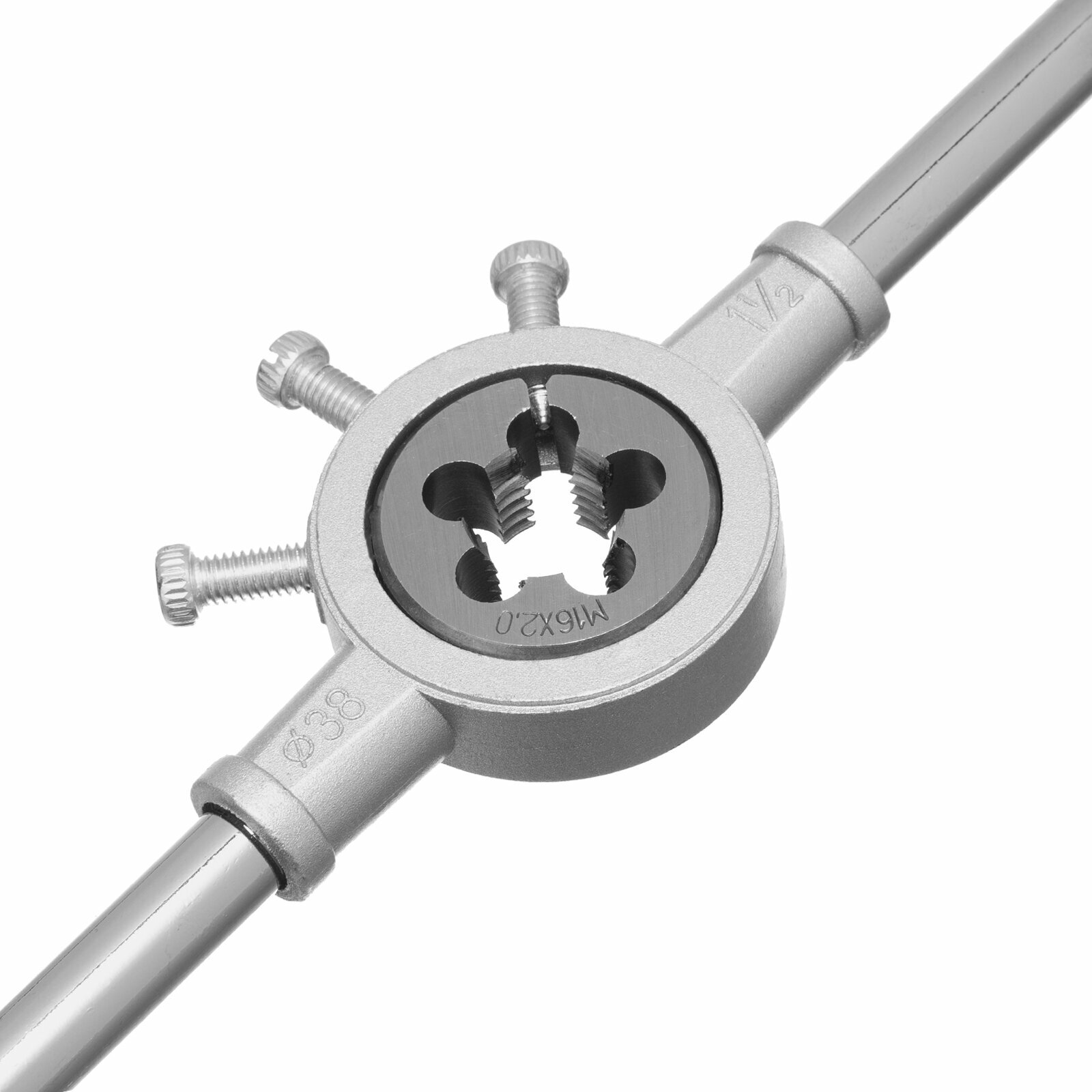 Плашки: М3 x 0.5 мм, М4 x 0.7 мм, М5 x 0.8 мм, М6 x 1 мм, М8 x 1 мм, М8 x 1.25 мм, М10 x 1 мм, М10 x 1.5 мм, М12 x 1.75 мм, М14 x 2 мм, М16 x 2 мм.