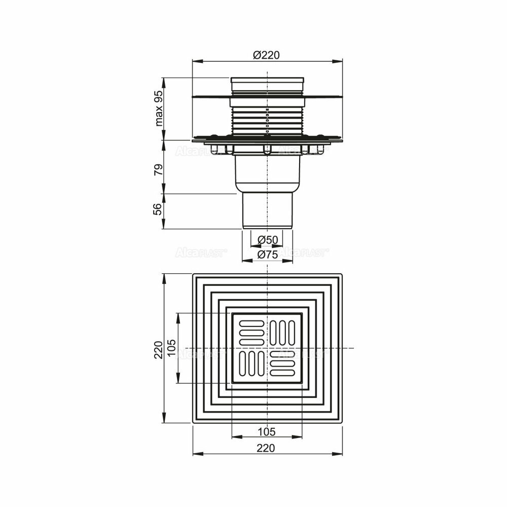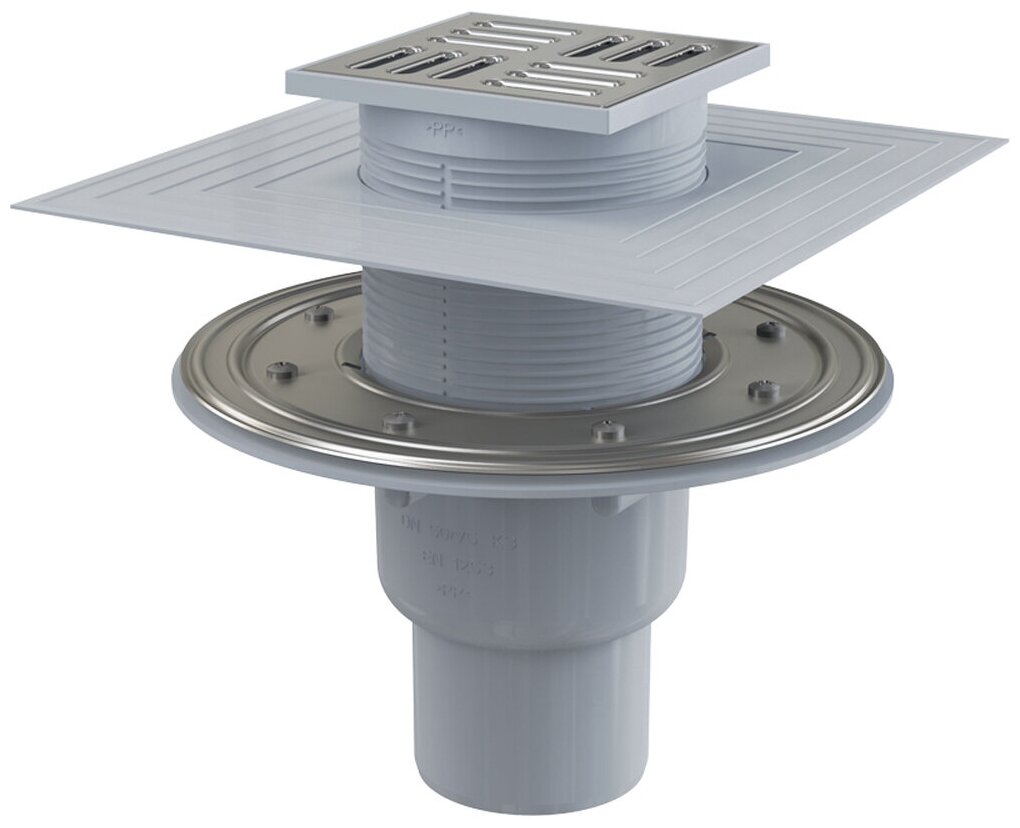 Сливной трап 105 105/50, подводка прямая, решетка нержавеющая сталь, фланец нержавеющая сталь, воротник 2х уровневая изоляция, гидрозатвор комбинированный гидрозатвор SMART. Регулируемая по высоте горловина 2595 мм. Широкий изоляционный воротник для удобного монтажа укладочной гидроизоляции пола. Воротник с 2-х уровневой изоляцией для армирования стяжки под плиткой. Воротник из нержавеющей стали для надежного соединения с гидроизоляцией укладочного типа. Прямое подключение к канализационному стоку 50/75 мм. Вручную легко чистящийся сифон, вплоть до сточной трубы. Гидрозатвор комбинированный SMART. Водяной столб и механическая заслонка эффективно препятствуют проникновению неприятного запаха из канализации. Совместимость с другими составными частями сливного трапа, включительно мокрого, сухого и комбинированного гидрозатвора SMART. Материал: полипропилен, устойчивый к механическим, химическим и термическим повреждениям. Материал: нержавеющая сталь AISI 304, DIN 1.4301
