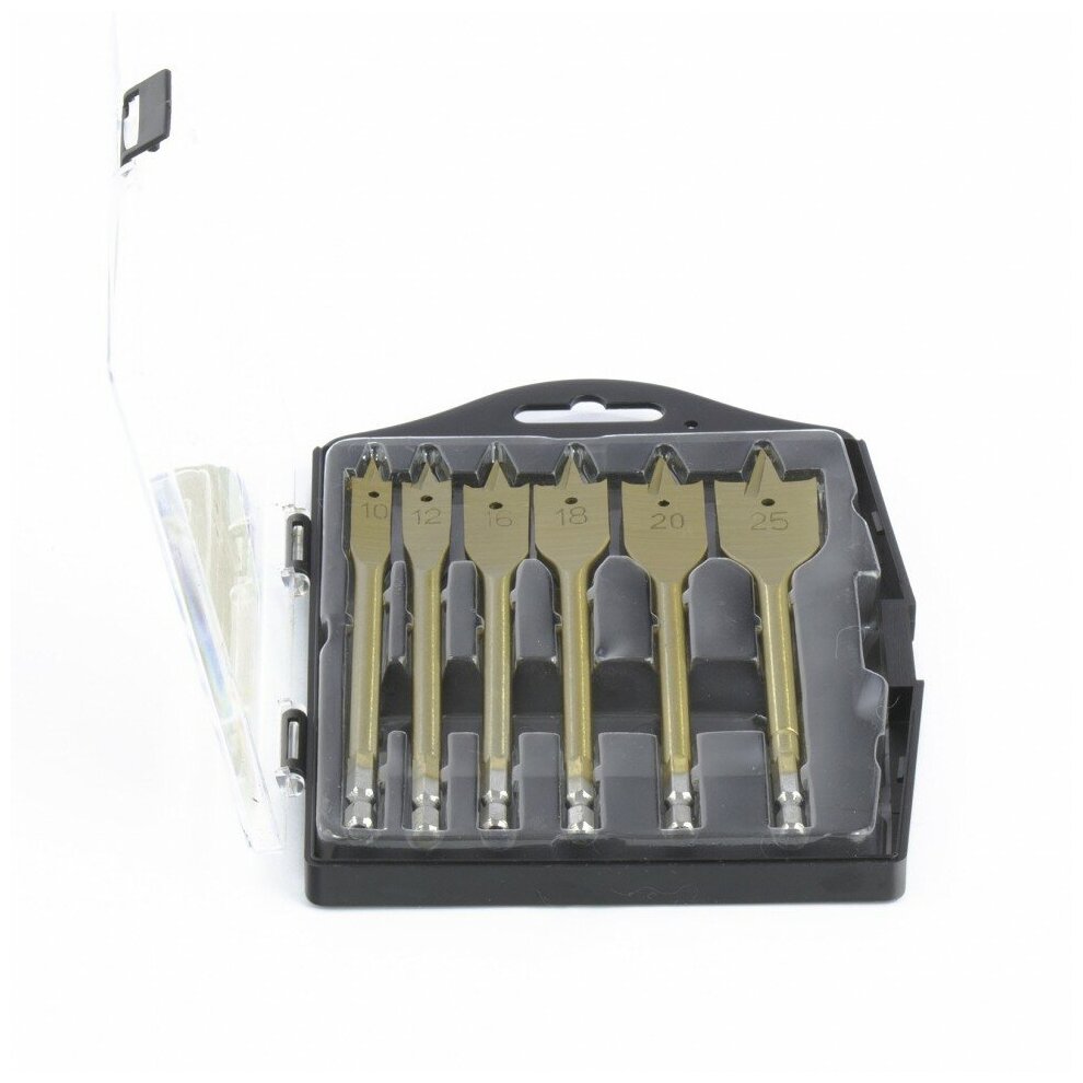 Набор сверл перовых по дереву, 10-12-16-18-20-25 мм, 6 шт., пластик. кейс// Matrix