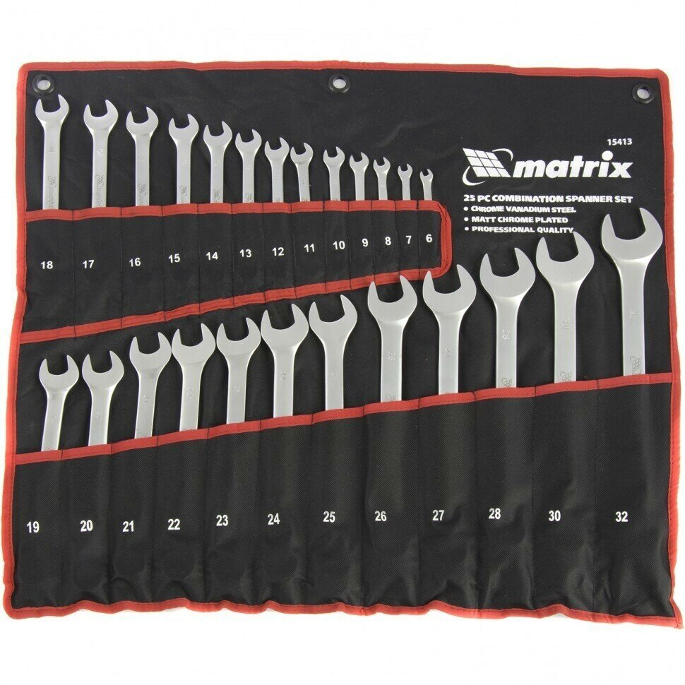 Набор ключей комбинированных, 6 - 32 мм, 25шт., CrV, матовый хром// Matrix