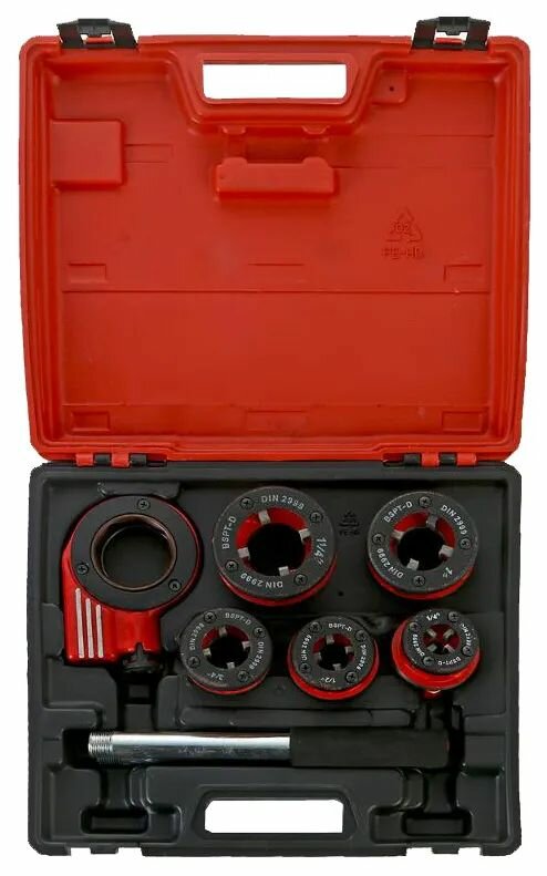 - [77332] Набор клуппов 1/4"-1/2"-3/4"-1"-1,25", плашкодержатель с трещоткой [Instrumtorg.ru]
