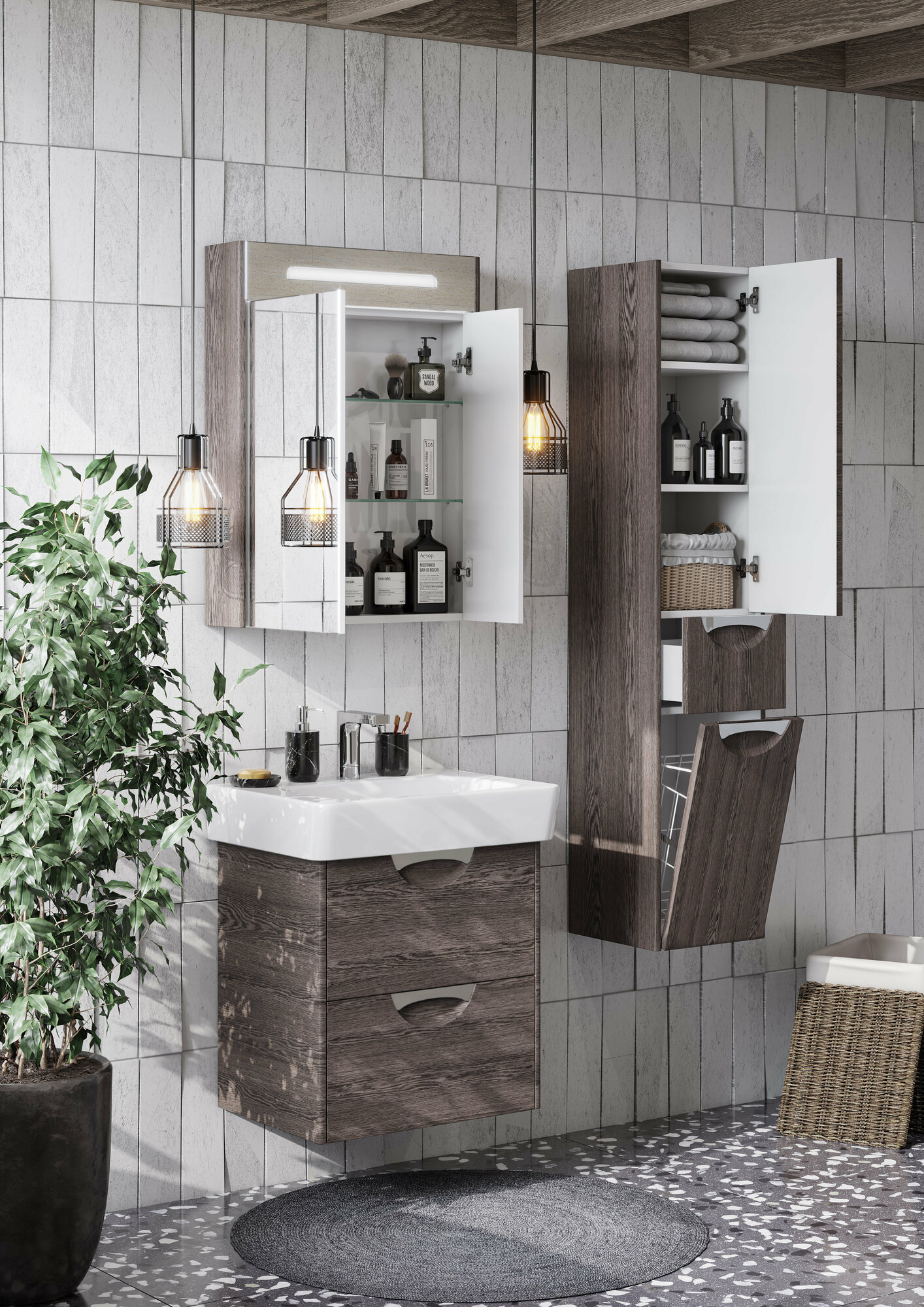 Зеркальный шкаф СИЛЬВА 60 СИЛЬВА Дуб Макиато 60 см изготовлен из прочного влагостойкого сырья, оснащен встроенным светодиодным светильником.