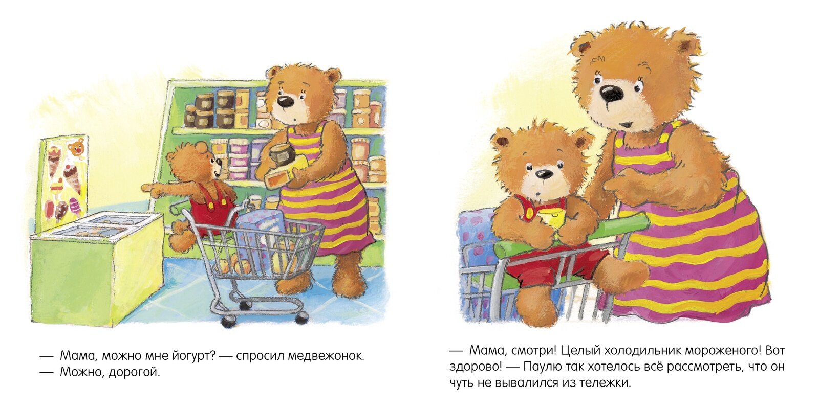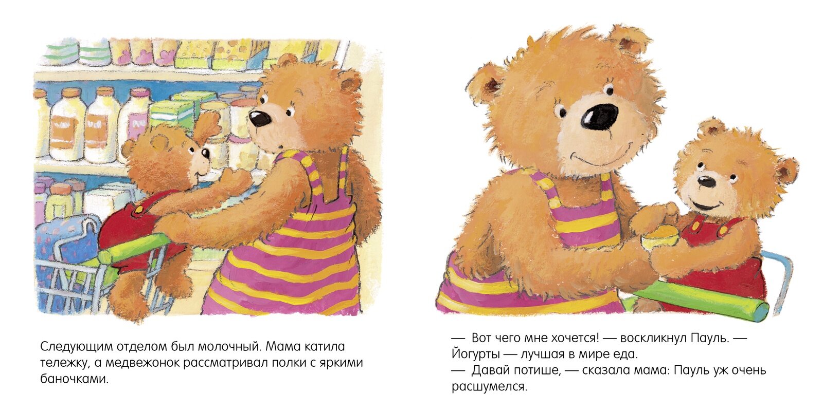 Серия трогательных историй о милом медвежонке Пауле познакомит малыша с окружающим миром и поможет освоить самые первые навыки. Маленький Пауль хочет купить сразу все. Как же успокоить капризного медвежонка?