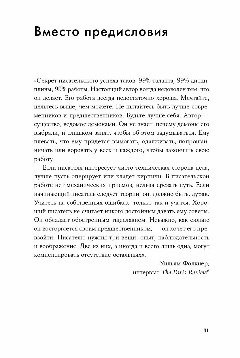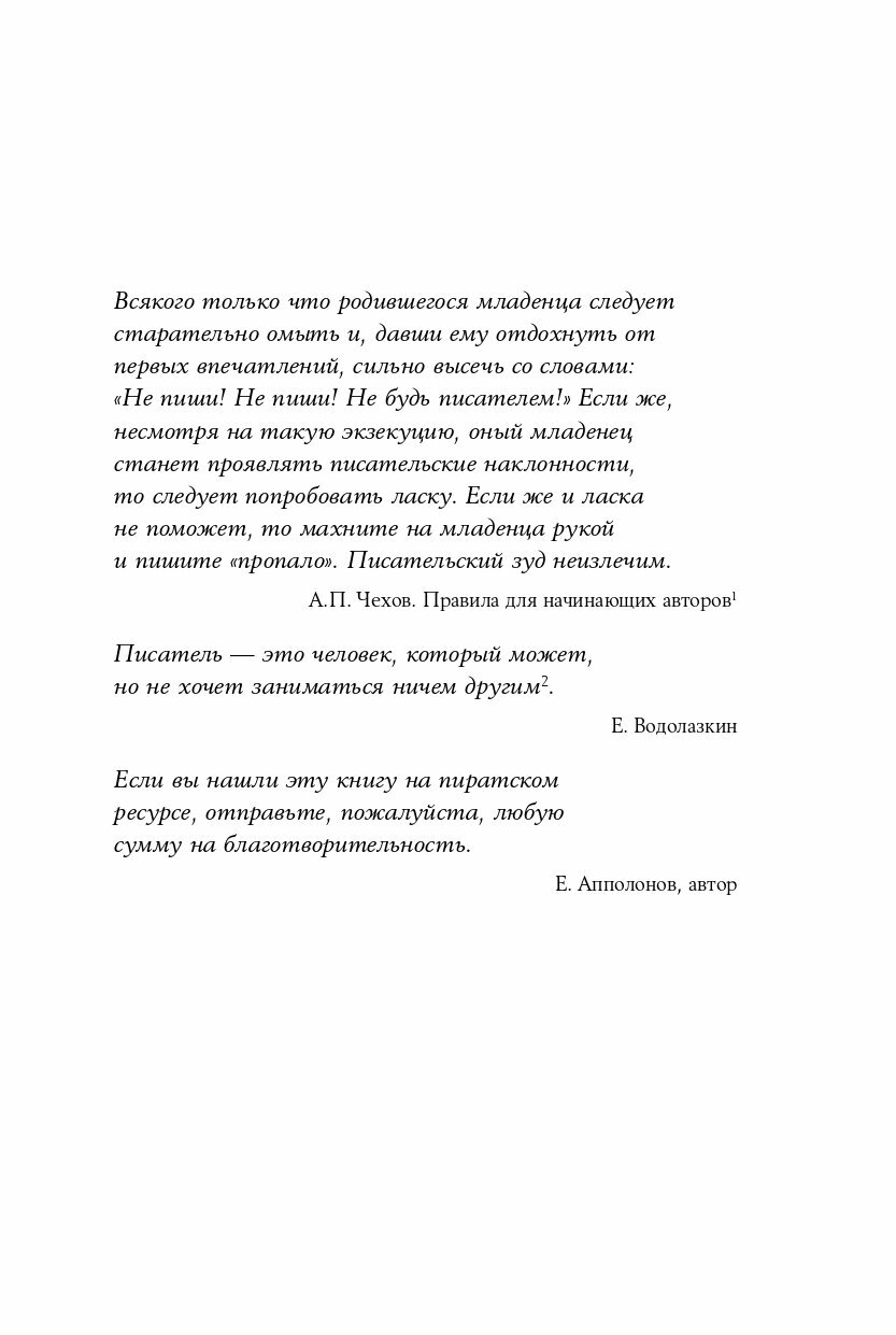 Журналист и создатель Telegram-канала «Хемингуэй позвонит» Егор Апполонов разбирается в анатомии творчества, обращаясь к опыту выдающихся классиков и писателей современности — Умберто Эко, Алексея Иванова, Джона Стейнбека, Нила Геймана, Алексея Сальникова, Майи Кучерской, Кормака Маккарти, Маргарет Этвуд, Виктора Пелевина, Джеймса Паттерсона, Евгения Водолазкина и многих других.В первой части книги вам предстоит пройти «путь писателя»: от создания романа до его издания. С чего начать работу, как преодолеть писательский блок, где брать идеи, темы, убедительных персонажей и как найти свой стиль. Вы узнаете о подводных камнях самиздата и особенностях работы с издательством. Вторая часть книги — диалоги о ремесле с известными писателями, в которых они делятся своими страхами и сомнениями, советами и секретами мастерства. И помните, что ни одна книга не научит вас быть писателем, но, прочитав эту книгу и проанализировав опыт великих писателей, вы, возможно, поймете, как им стать.
