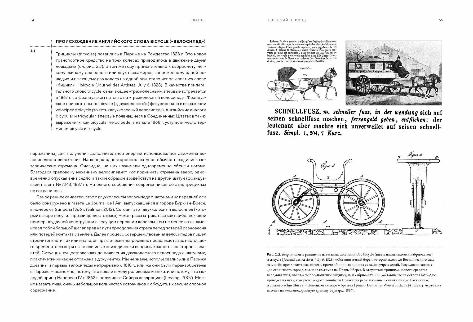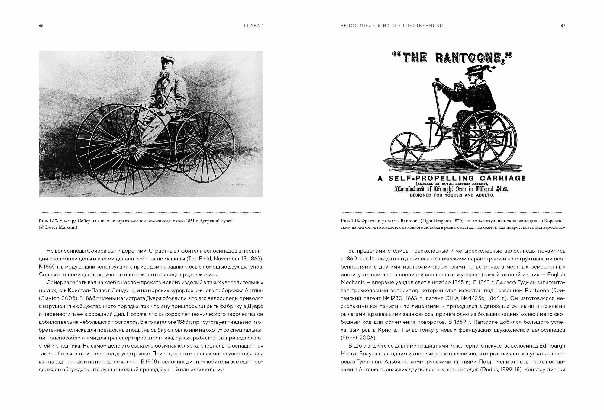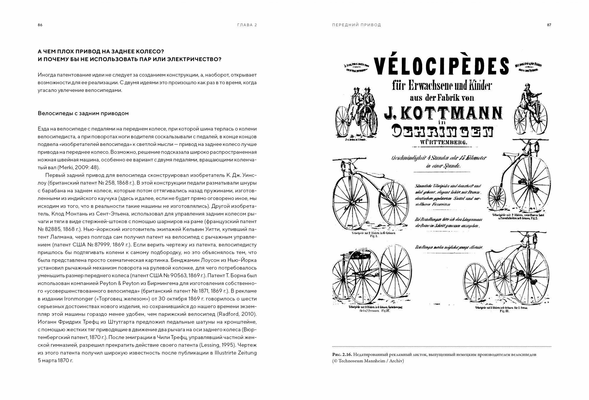 Ведущие специалисты по истории техники и технологий Тони Хэдленд и Ханс Эрхард Лессинг исследовали ключевые этапы эволюции велосипеда от первых прообразов до суперсовременных машин. На основе впечатляющего объема материалов, в том числе специализированной патентной документации, в сопровождении более 300 уникальных иллюстраций в книге показано развитие технических характеристик велосипедов и их отдельных компонентов, включая сиденья, трансмиссию, тормоза, осветительные устройства и приспособления для перевозки груза и пассажиров (багажники, велорюкзаки, подседельные сумки, прицепы и детские сиденья).