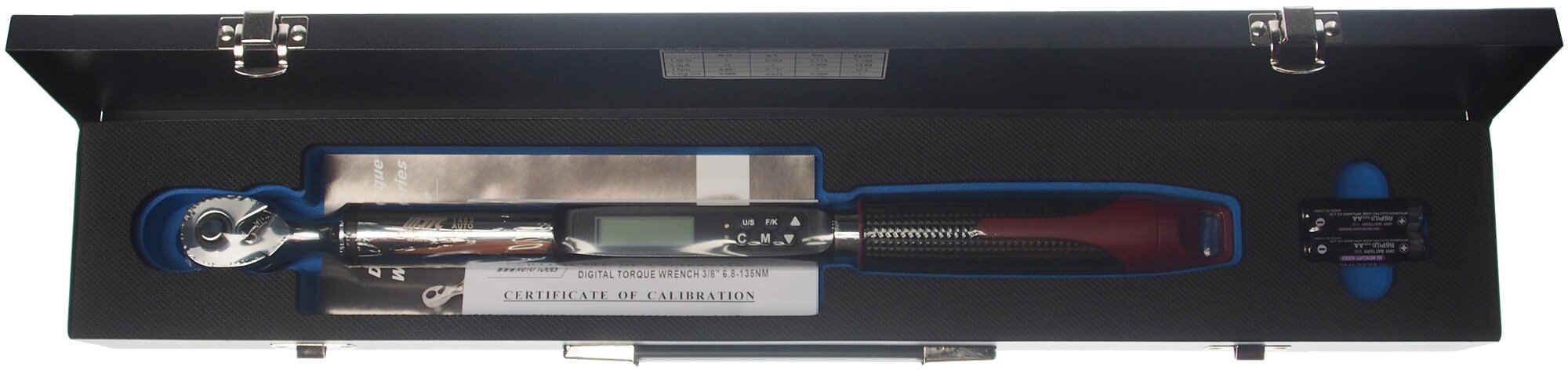 Ключ динамометрический JTC JTC-, 3/8", с цифровой индикацией, усилие затяжки 7-135Nm, длина 425 мм - оснащен дисплеем, на котором отображаются рабочие параметры, а также трещоткой. Рифленая ручка предотвращает скольжение руки во время работы. Инструмент имеет посадочный квадрат 3/8 и выполнен из прочной высококачественной стали. Поставляется в надежном футляре для безопасного хранения и транспортировки.Преимущества Цифровое считывание значения крутящего момента с функцией запоминания на 30 ячеек памяти Жидкокристаллический экран с подсветкой Выбор определенного текущего или максимального значения Мигание светодиода и звуковой сигнал. Если крутящий момент достигает 90% от предустановленного значения включается вибрационный сигнал Выбор единиц измерения (fl.lb, in.lb, kg.cm, N.m) Автовыключение после 2 минут бездействия или нажатия кнопки С в течение 3 секунд Точность: CW±1.5%; CCW±2.5% Храповый механизм на 72 зуба, угол поворота 5° Диапазон усилий затяжки: 6.8-135 Н·м Длина 425 мм
