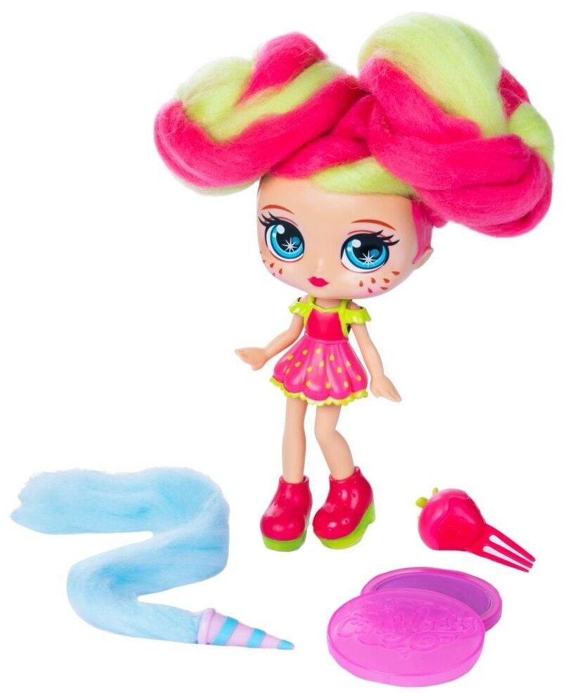 | Комплектация | кукла - 1 шт, заколка клубничка, пудра для окрашивания волос, дополнительный локон в вафельном рожке, коллекционный гид |