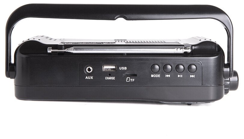 Хороший звук с регулировкой тембра высоких частот. Телескопическую антенну можно вращать на все 360 градусов. Есть гнездо для наушников