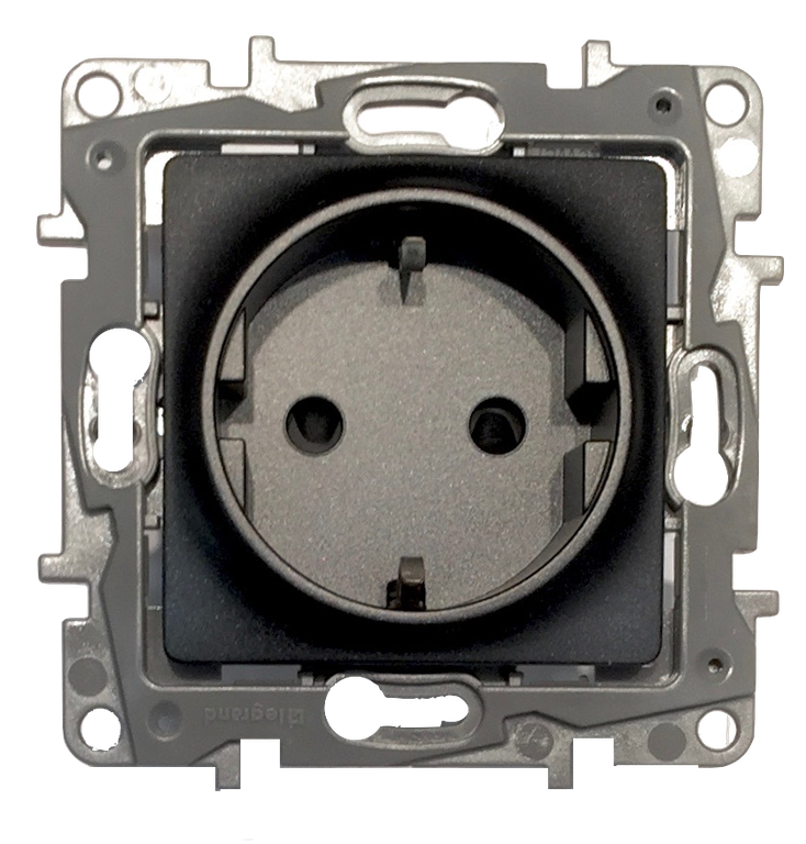 Розетка однопостовая ETIKA с защитными шторками и заземлением антрацит