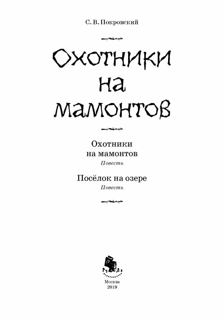Увлекательные повести Сергея Викторовича Покровского "Охотники на мамонтов" и "Поселок на озере" переносят нас в доисторическое время, когда земля была заселена злыми и добрыми духами, а по ее просторам бродили мохнатые гиганты. Древним людям приходилось постоять за себя, чтобы выжить. Читатель знакомится с бытом, культурой и обычаями людей каменного века.