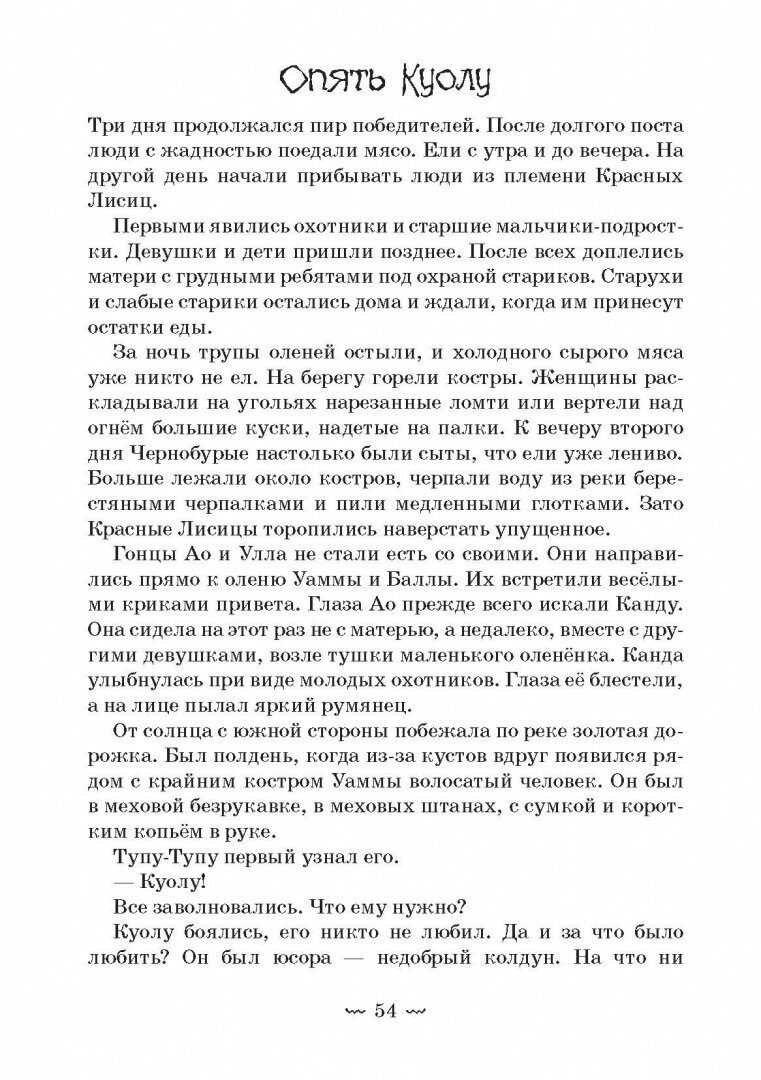 В книге представлены две захватывающие повести, рассказывающие о далёких временах - о каменном веке, когда люди жили родовыми общинами, берегли огонь, занимались собирательством, рыбалкой и охотой... Если охотникам повезёт и в ловушку попадёт огромный мамонт, то взрослые и дети племени устроят вечером весёлый пир. Если добычи не будет, тогда всему роду придётся плохо, с родной земли сгонят враги, да еще колдун наведёт какую-нибудь беду... Но охотники молоды, сильны, их тянет в путь к холодным ледникам, где они смогут набраться сил для победы над злобным Куолу, к далёким озёрам, где отважные юноши найдут себе красивых невест. Но вот сумеют ли они выполнить задуманное и защитить своих любимых? Об этом узнаете, открыв книгу.