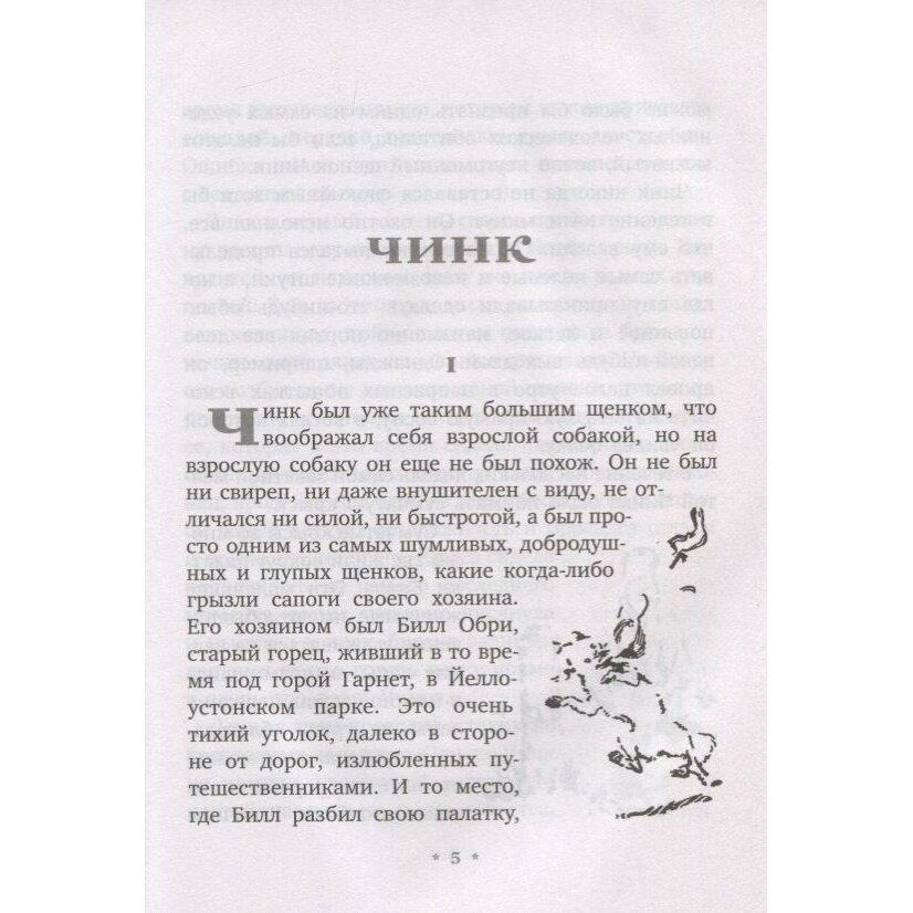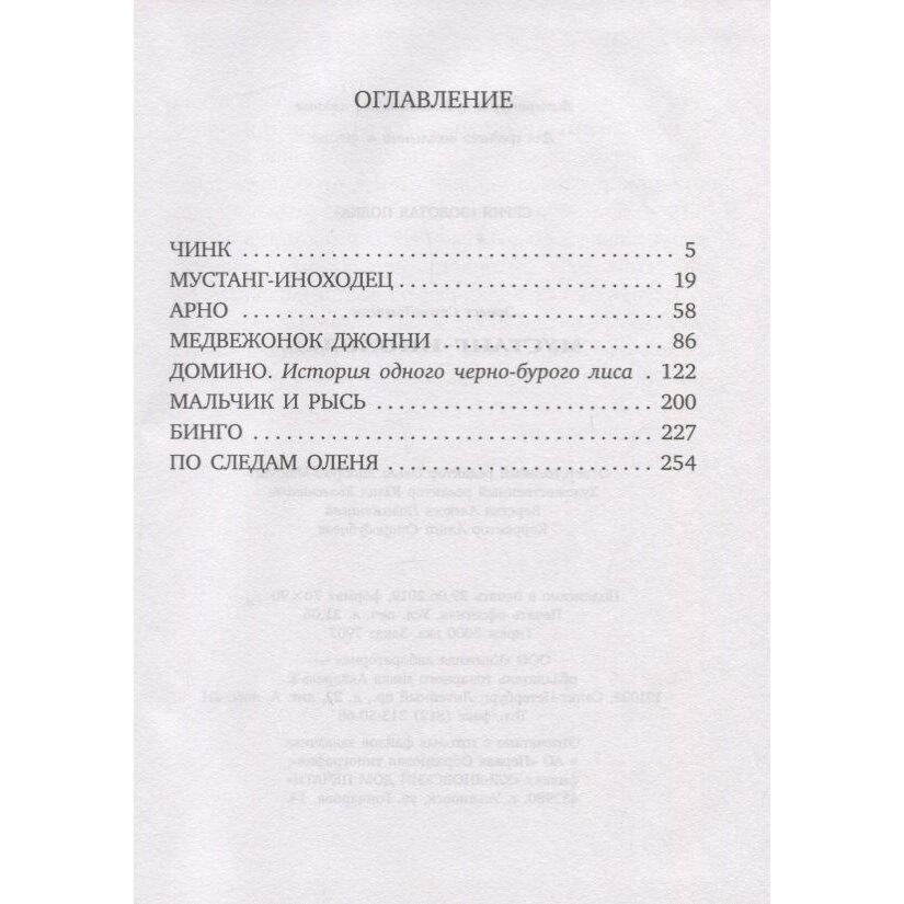Истории Сетона-Томпсона не оставят равнодушными читателей любого возраста. Сладкоежка медвежонок Джонни, упрямый щенок Чинк, самый быстрый на свете голубь Арно, свободолюбивый мустанг-иноходец, неуловимый черно-бурый лис Домино, сильный и смелый пес Бинго - настоящие животные-герои, которые способны нам, людям, дать уроки доброты и любви.