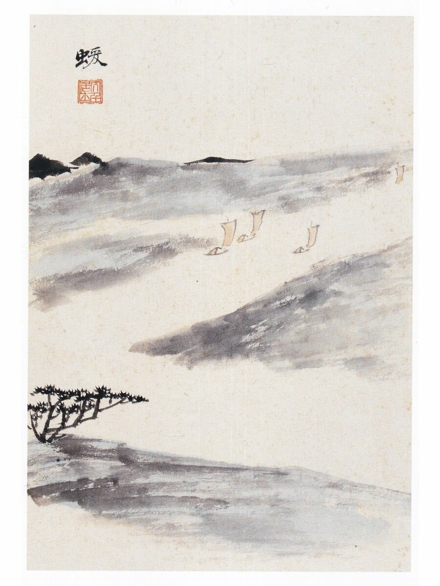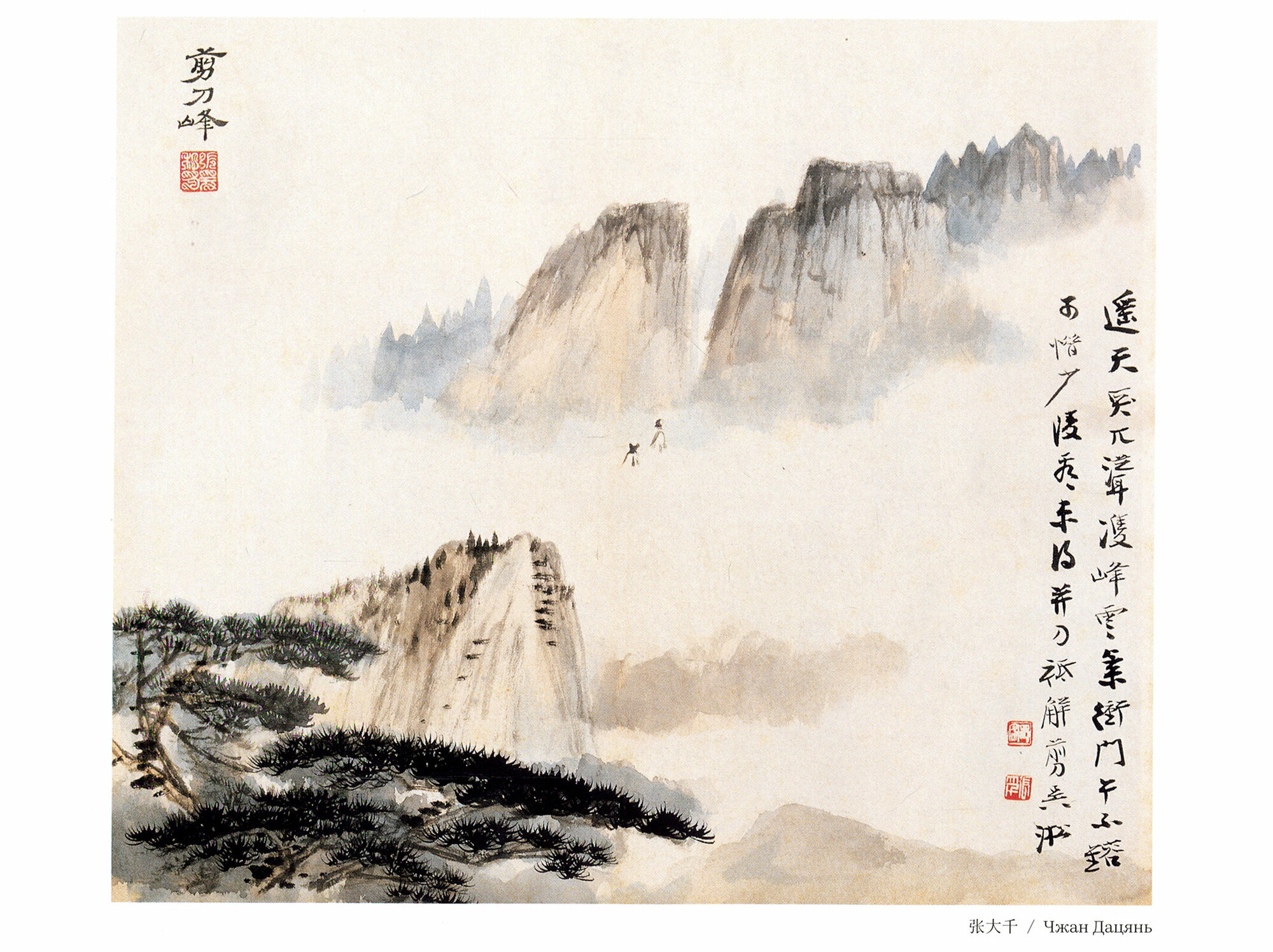 древности: У Чжэня, Ван Мэна, Дун Юаня, Цзюй Жаня, Ли Чэна, Ма Юаня и Лян Кая. О Чжан Дацяне и Пу Синьюе говорили так: "На юге Чжан, на севере Пу". В поздний период своего творчества он начал рисовать цветной тушью, соединив техники прорисовки контуров, штриховки и растушевки. Он не побоялся создать нечто новое на основе традиционного китайского пейзажа, и это прославило его на весь мир. Кроме того, Чжан Дацянь был талантливым каллиграфом, иногда занимался резьбой печатей, собирал прекрасные коллекции.