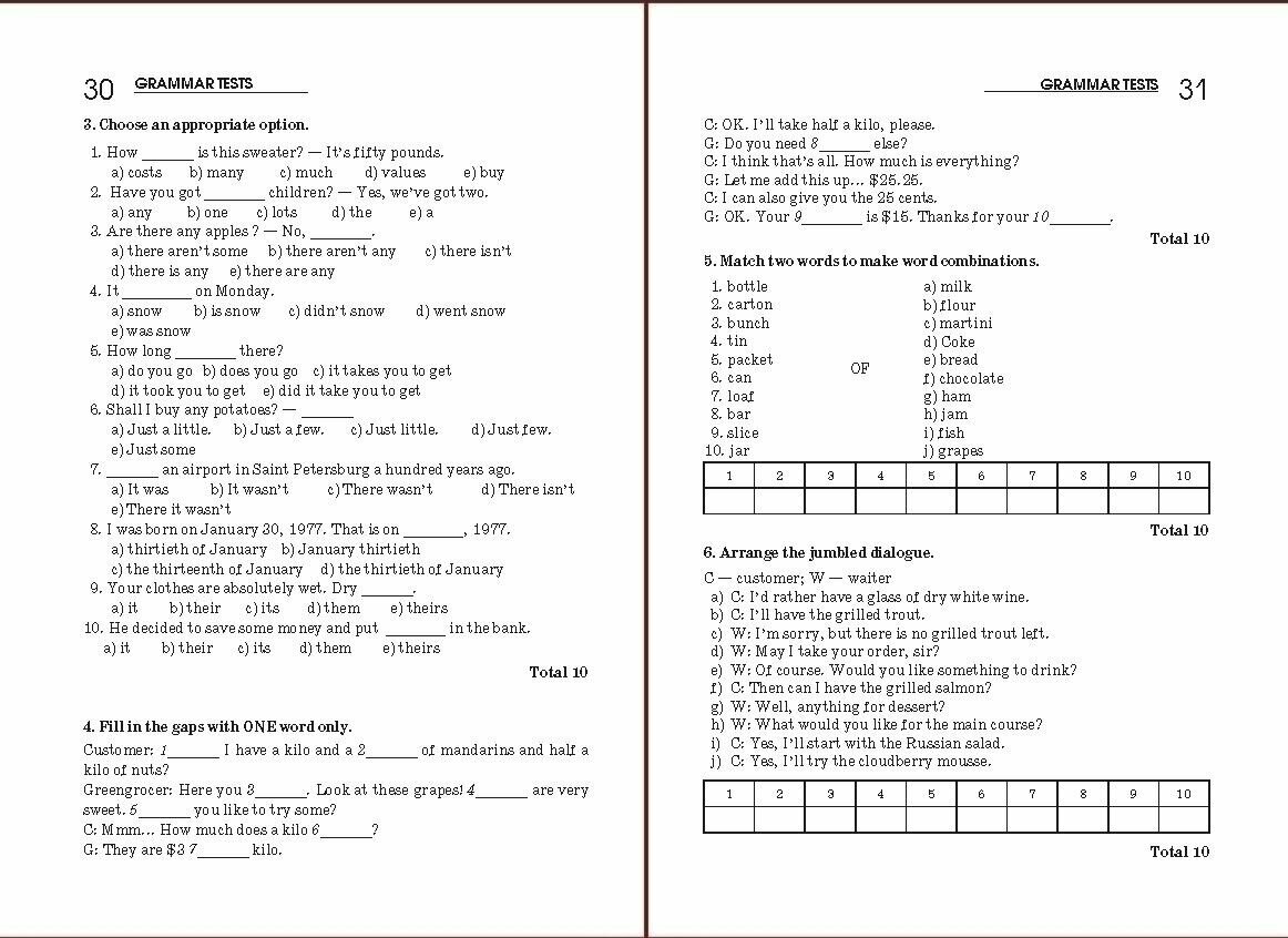 К тестам по грамматике (Grammar Tests) относятся задания на выбор правильного ответа, перевод, исправление ошибок, заполнение пропусков, определение лишнего слова и т. д.