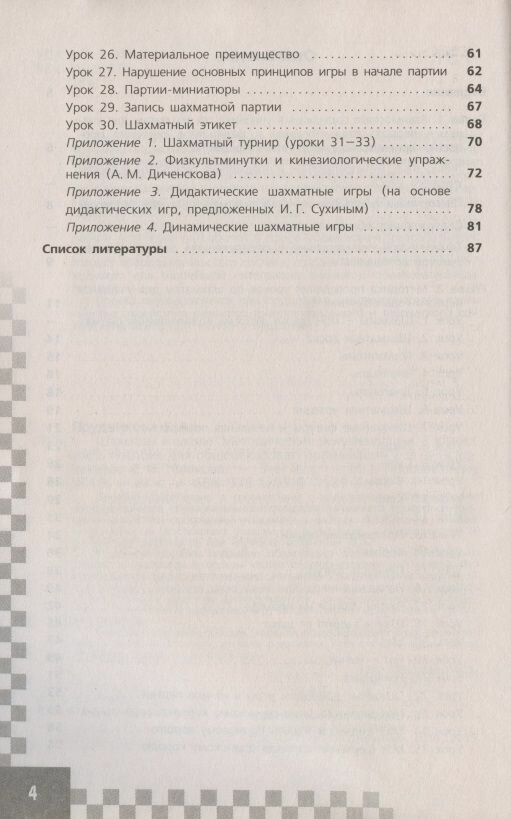 Пособие разработано в соответствии с требованиями Федерального государственного образовательного стандарта начального общего образования и рабочей программой "Шахматы в школе". Содержание пособия направлено на достижение учащимися личностных, метапредметных и предметных результатов при изучении шахматной игры.