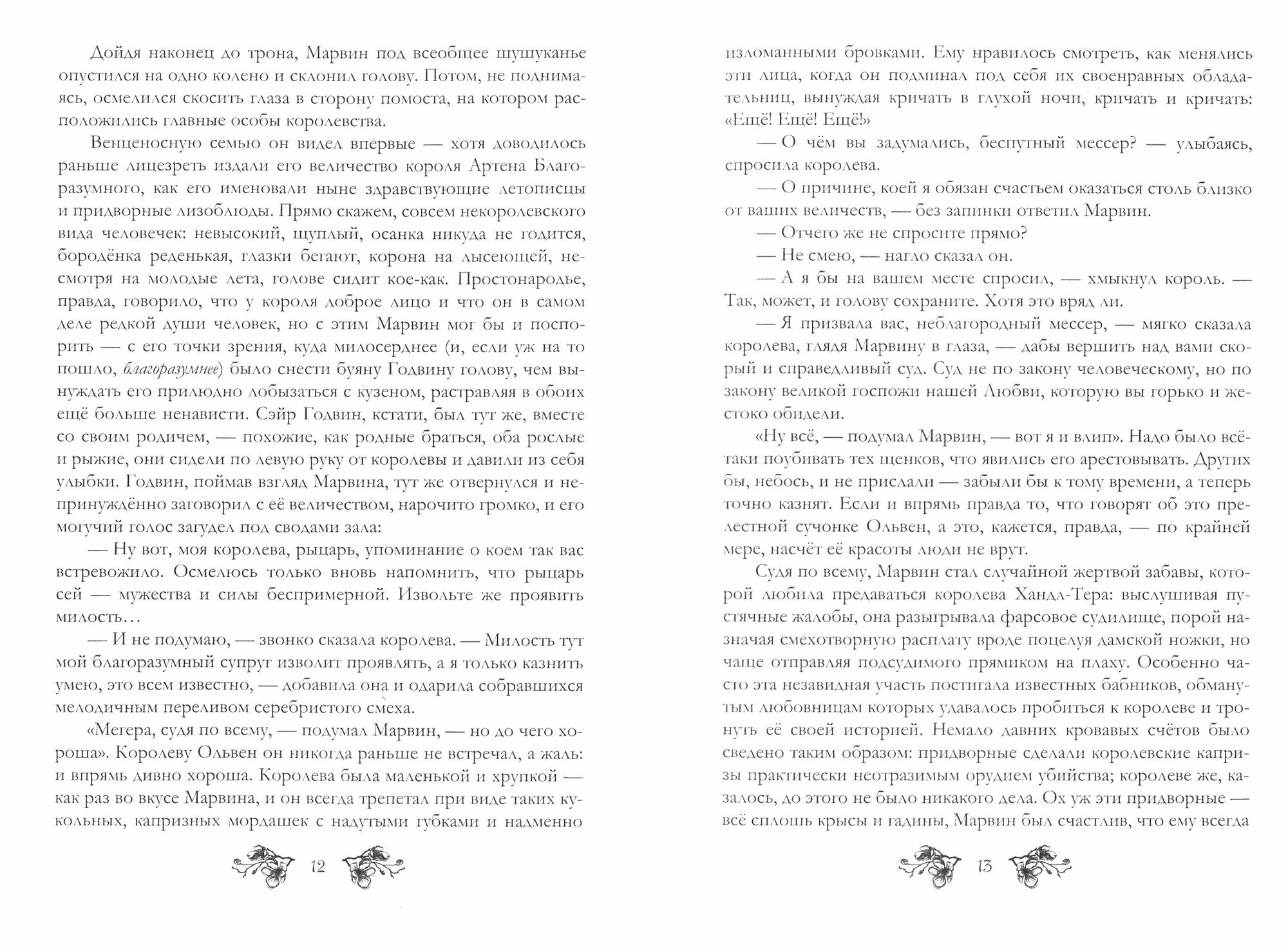 Хочу сказать, что вот это вот "я гналась за вами три дня, чтобы сказать, как вы мне омерзительны", надоедает очень быстро, но то, какой вокруг фон, как стремительно все разворачивается, придает книге изюминку. Большую такую, что не оторвешься, пока не догрызешь :) Я грызла с большим, надо сказать, удовольствием. И в целом, пожалуй, на мой вкус в романе и крепкий сюжет, и очень хорошие персонажи, колоритные, за их поступками интересно следить, пусть даже поведение большинства вызывает отвращение. Средневековье, что поделать.Небольшая проблема только в том, что эмоции (любые), вызывают только мужчины. С дамами тут дичайший напряг и только Ив еще как-то более-менее адекватна (хотя и с ней у меня был момент огромного фейспалма. Боги, как я смеялась при их с Птицеловом последнем разговоре). Другие же - шлюха-королева, глупая романтичная девчонка, идиотка-дочурка, ненормальная сестрица, влюбленная изменщица, мужеподобная герцогиня - банально, аж зубы сводит. И буквально про каждую нам не забывают сказать, что она дура. Ну камон! 21 век на дворе. Надоело. С другой стороны, все в лучших традиция куртуазного романа, кмк :) Да и не играют эти дамы особой роли, по сути, так, оттеняют главных героев и их невероятный конфликт "кто кого оскорбил сильнее" :)