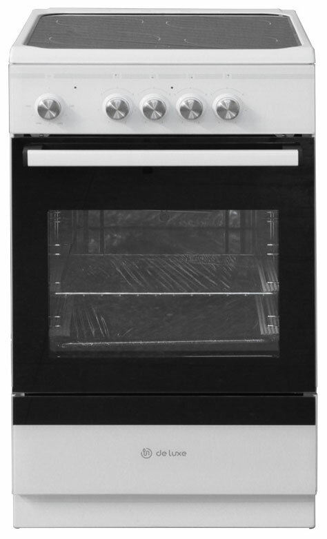 Плита электрическая De Luxe белый/черный, отдельностоящая, поверхность стеклокерамика, электрических конфорок: 4, механическое управление, объём духовки 54л